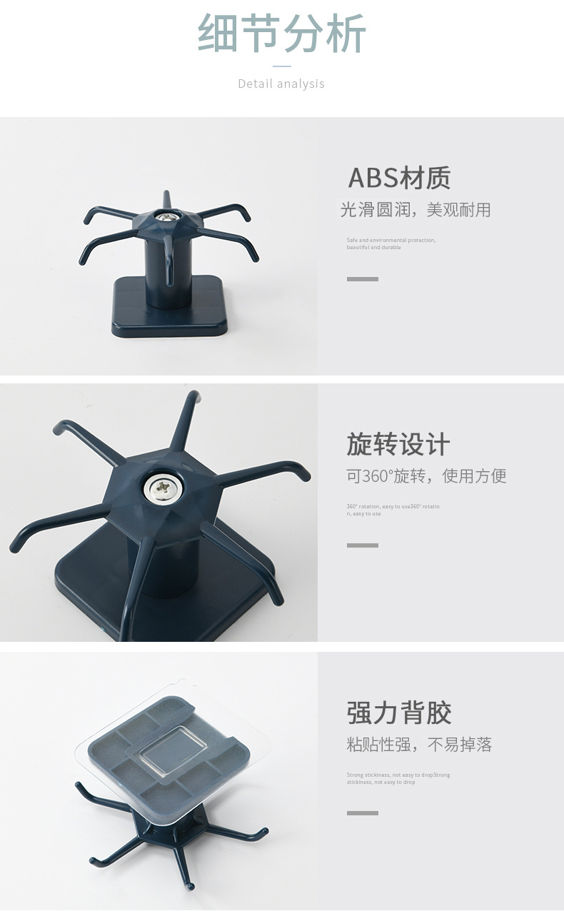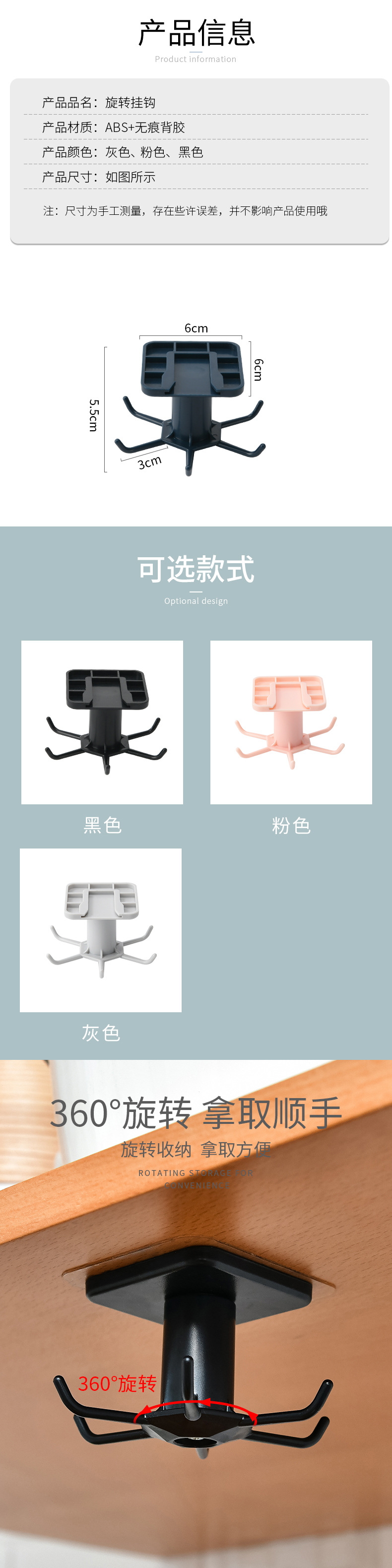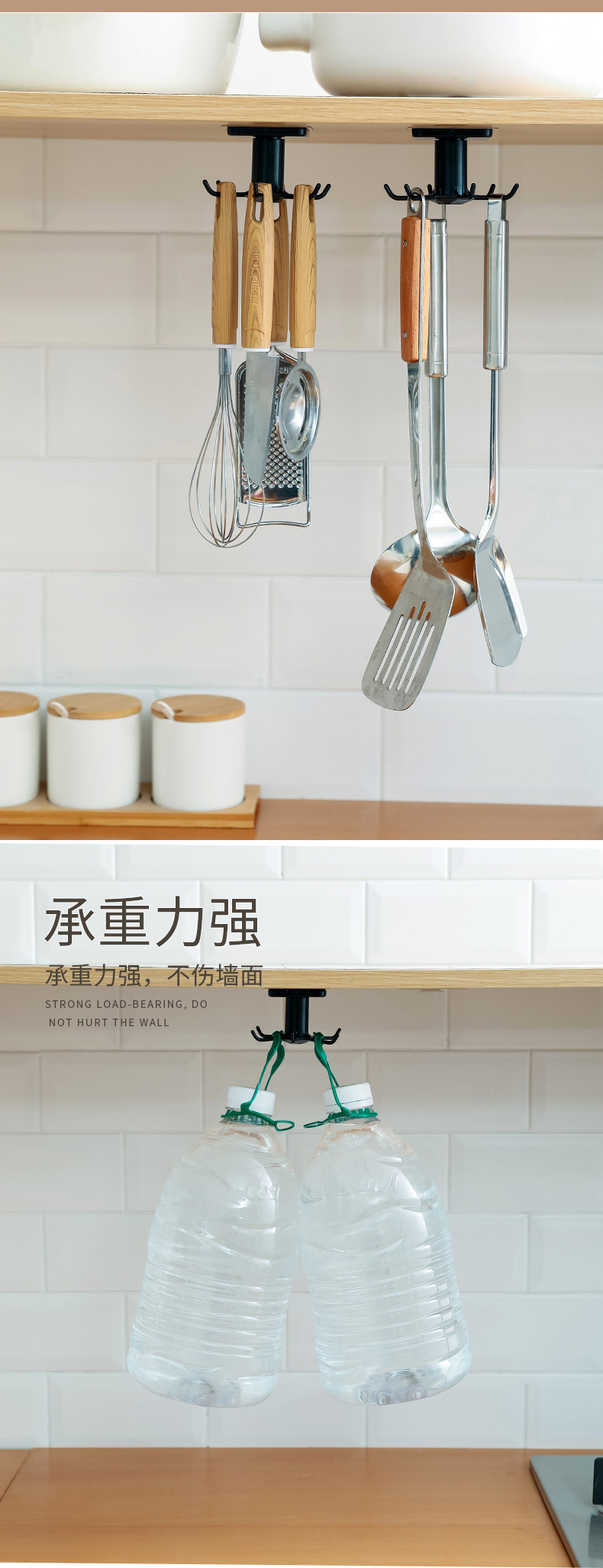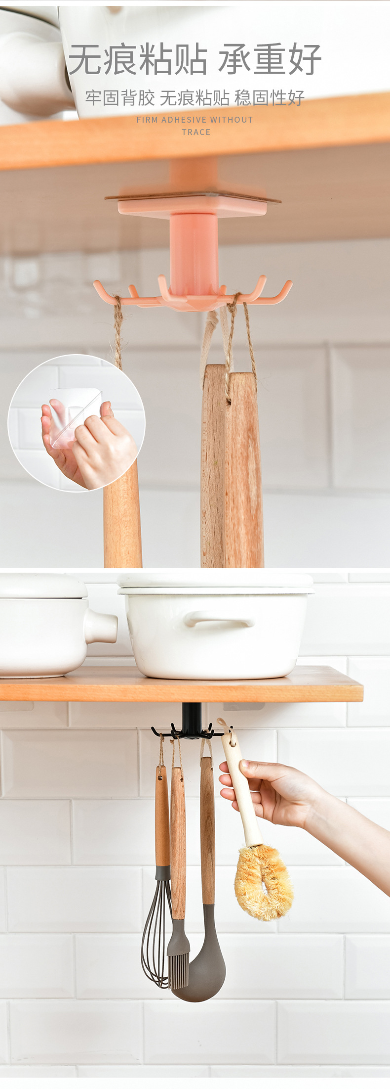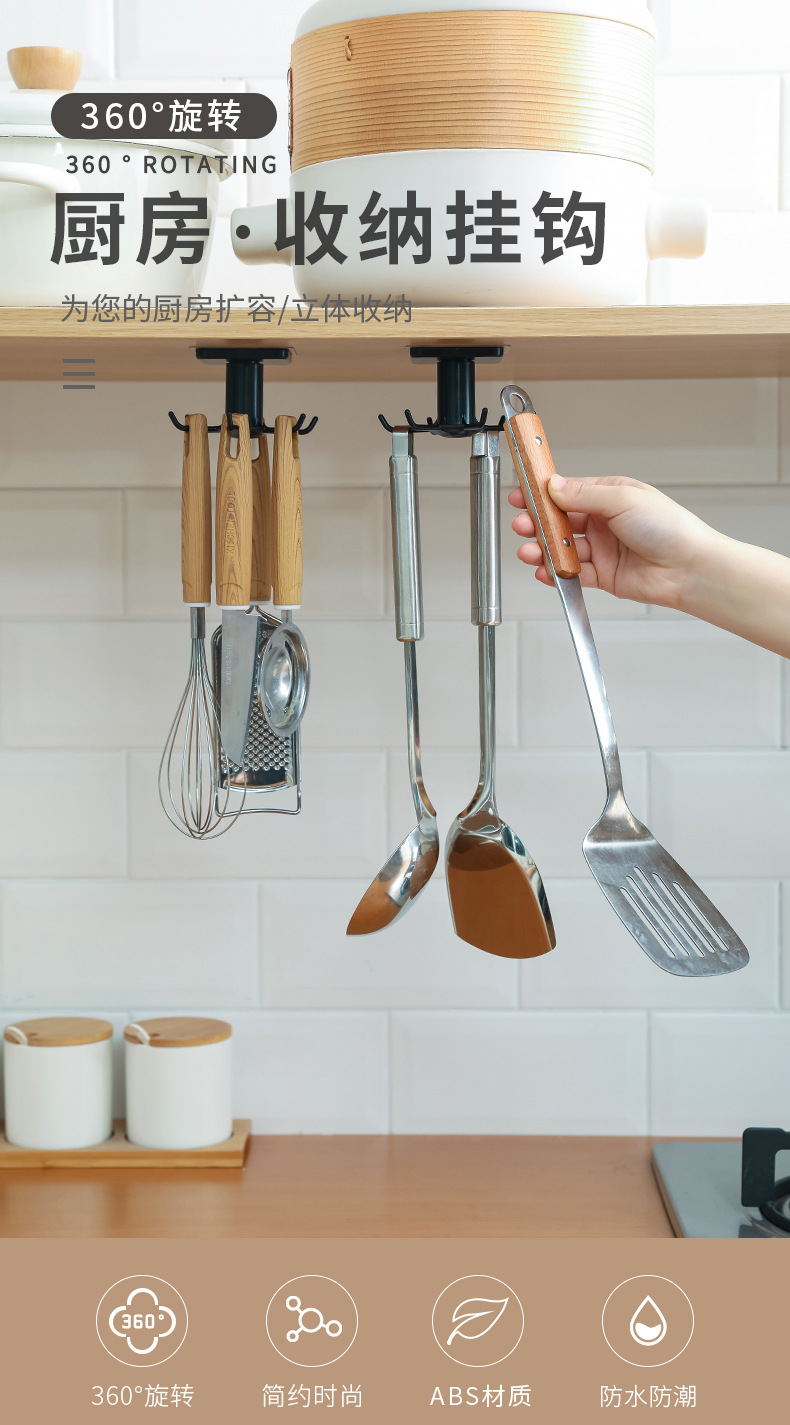 Techo de cocina transfronterizo Gancho giratorio de 360 grados Espátula Gancho de almacenamiento de utensilios de cocina Gancho giratorio de 6 garras montado en la pared