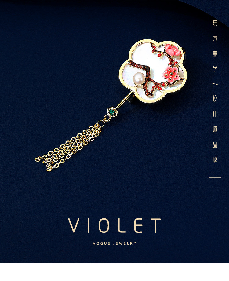 Retro diseño sentido ciruela orquídea crisantemo de bambú natural anti-Shell perla broche nicho estilo antiguo borla Mujer ramillete pin Accesorios
