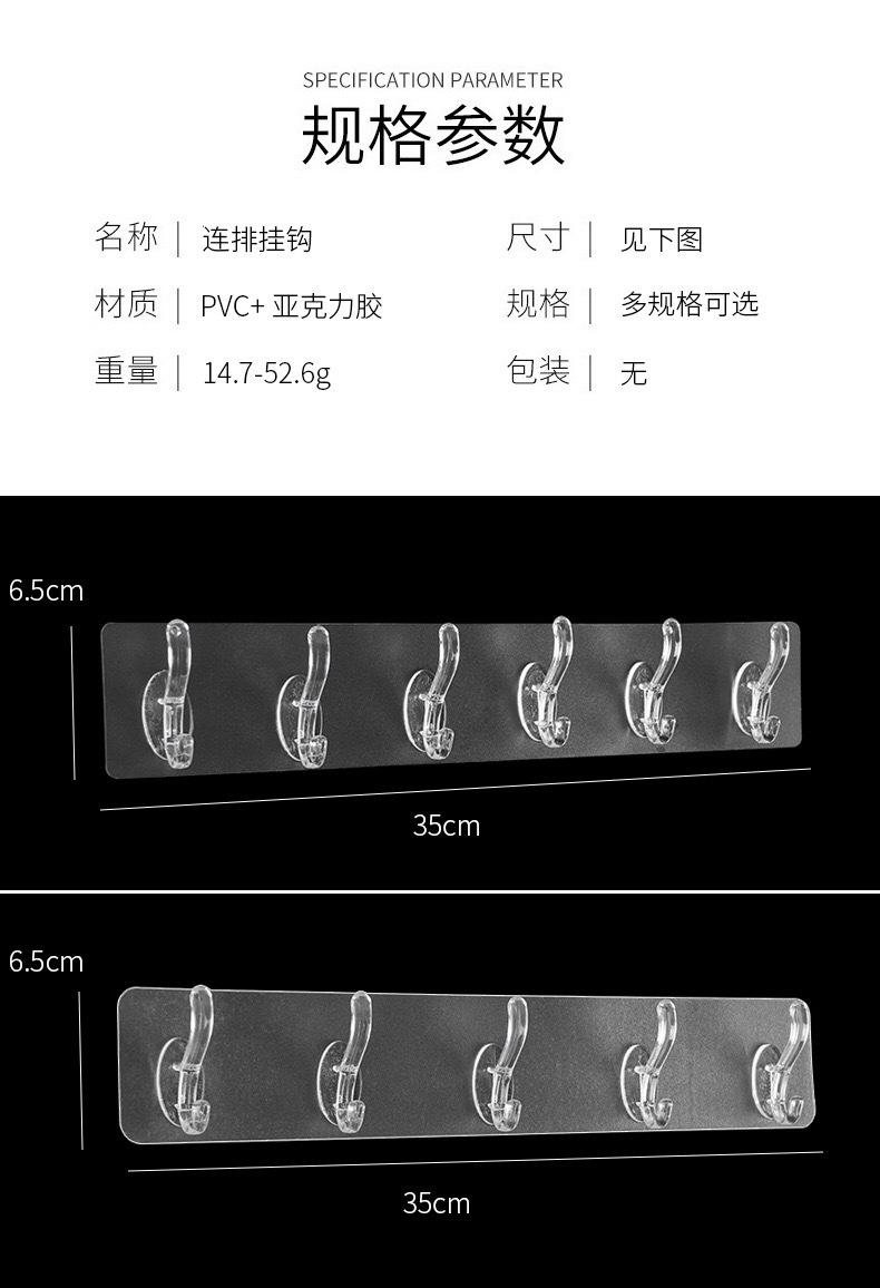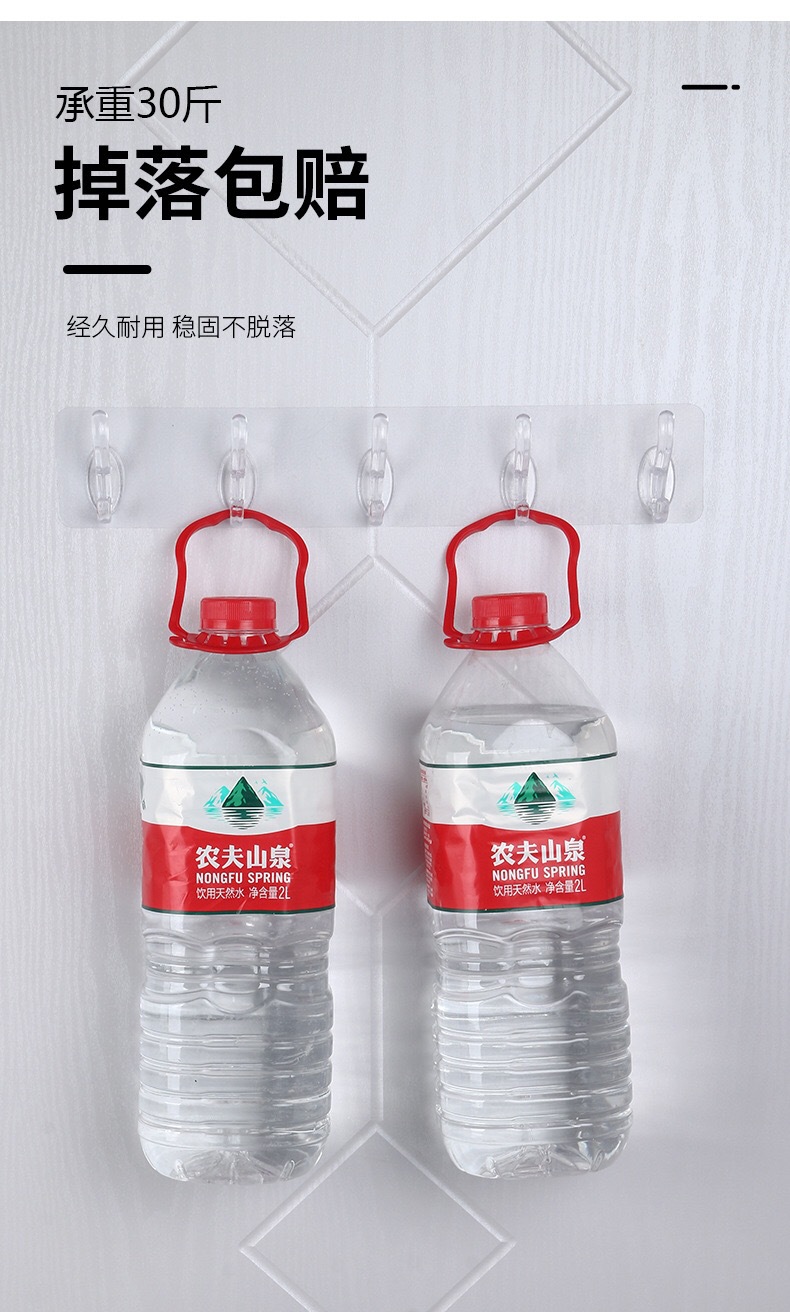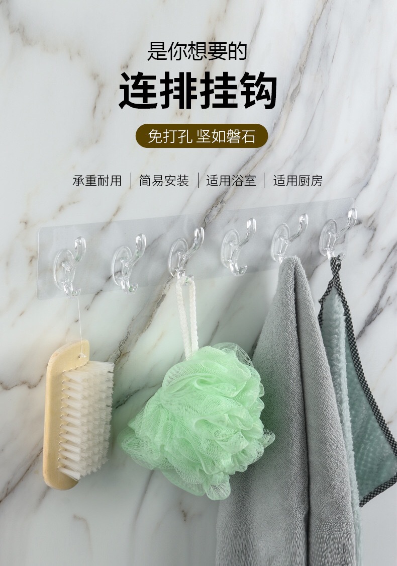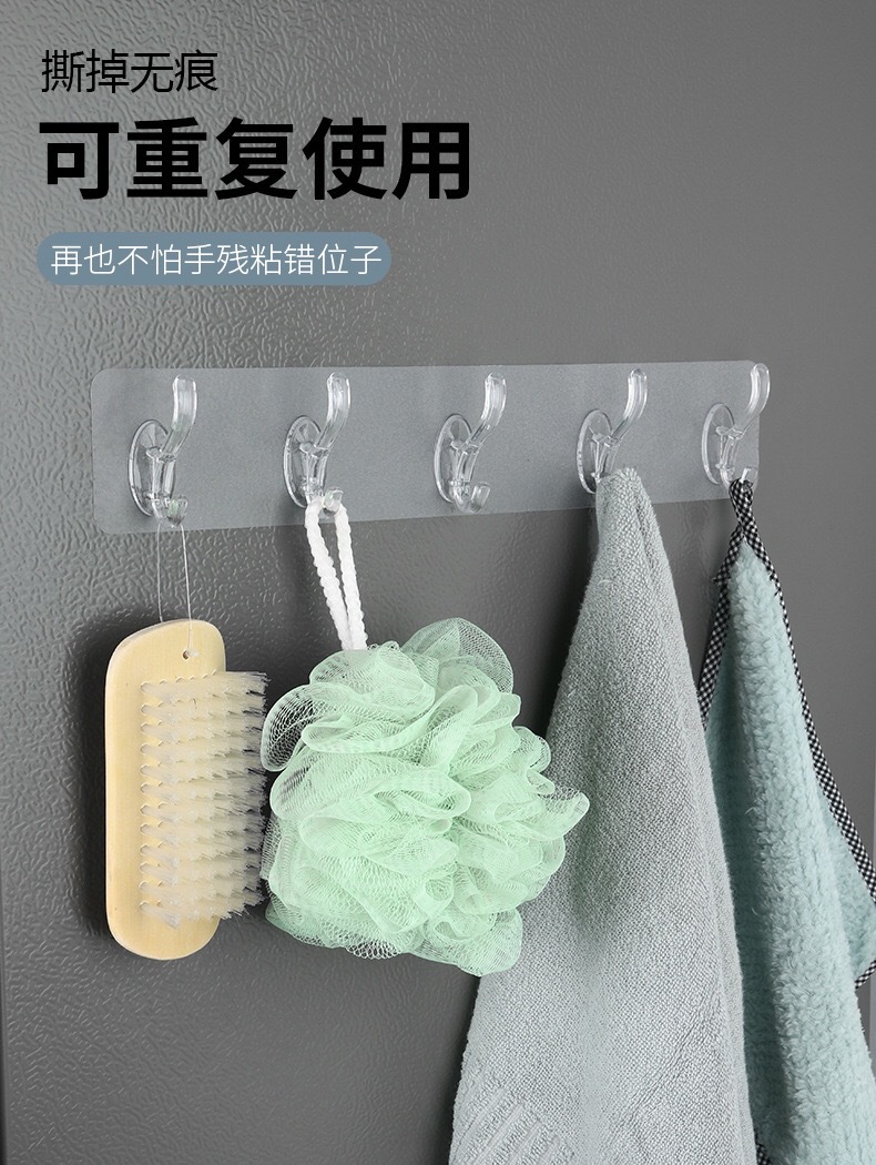 Gancho de fila transparente sin punzones gancho pegajoso sin costuras 5 piezas gancho pegajoso fuerte de 6 piezas gancho de fila montado en la pared y gancho de sombrero