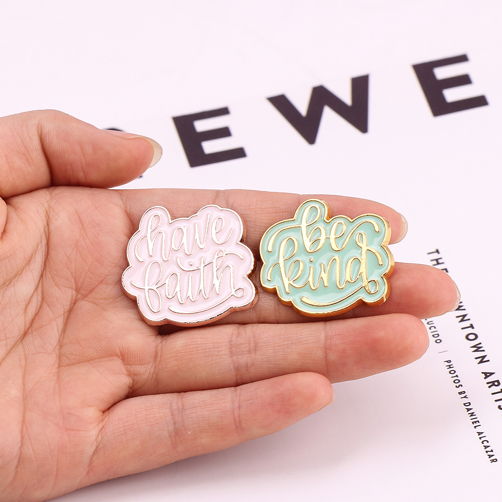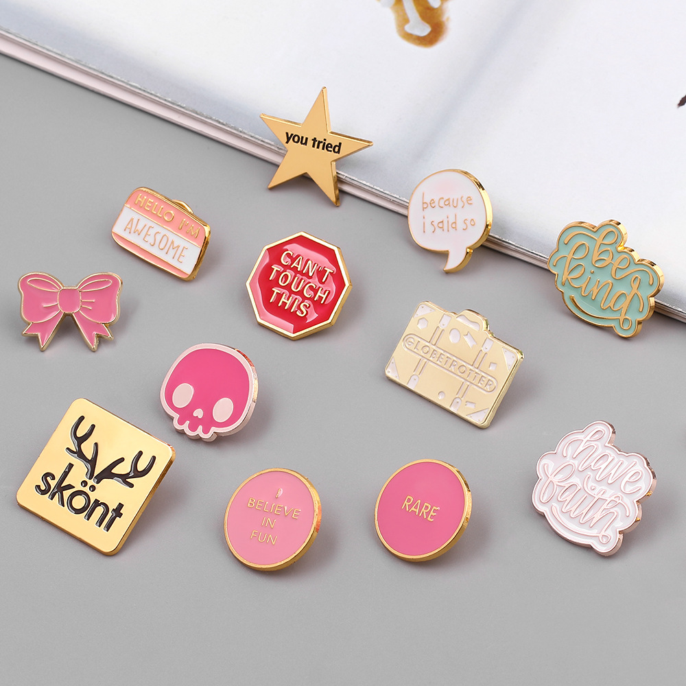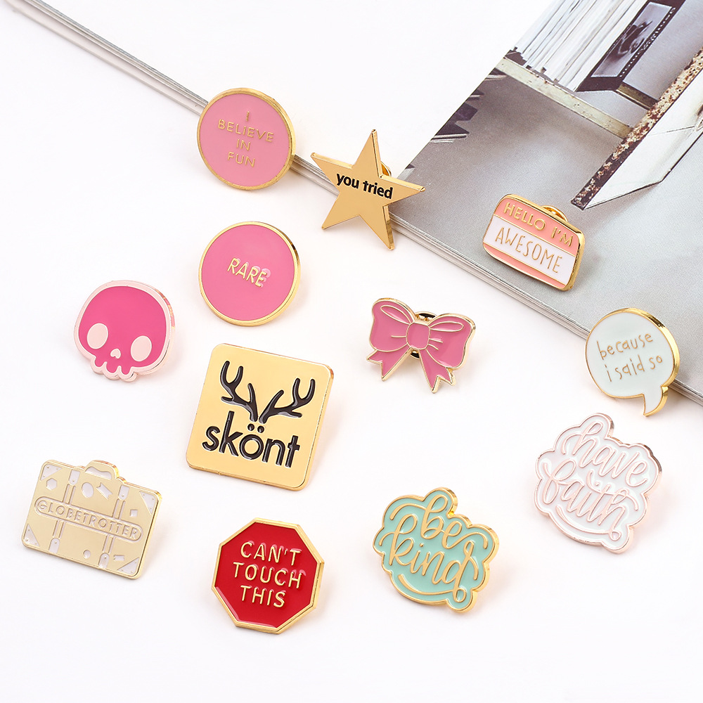 Europeo y americano transfronterizo Venta caliente personalizado creativo inglés letras cuadrado diseño metal insignia bolsa accesorios broche al por mayor