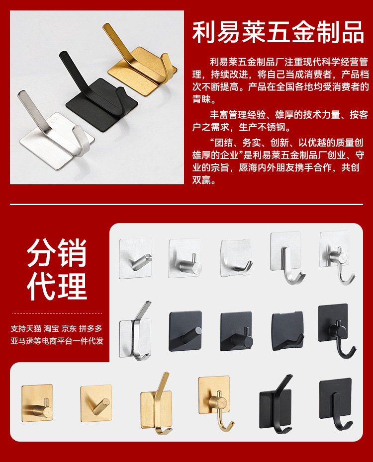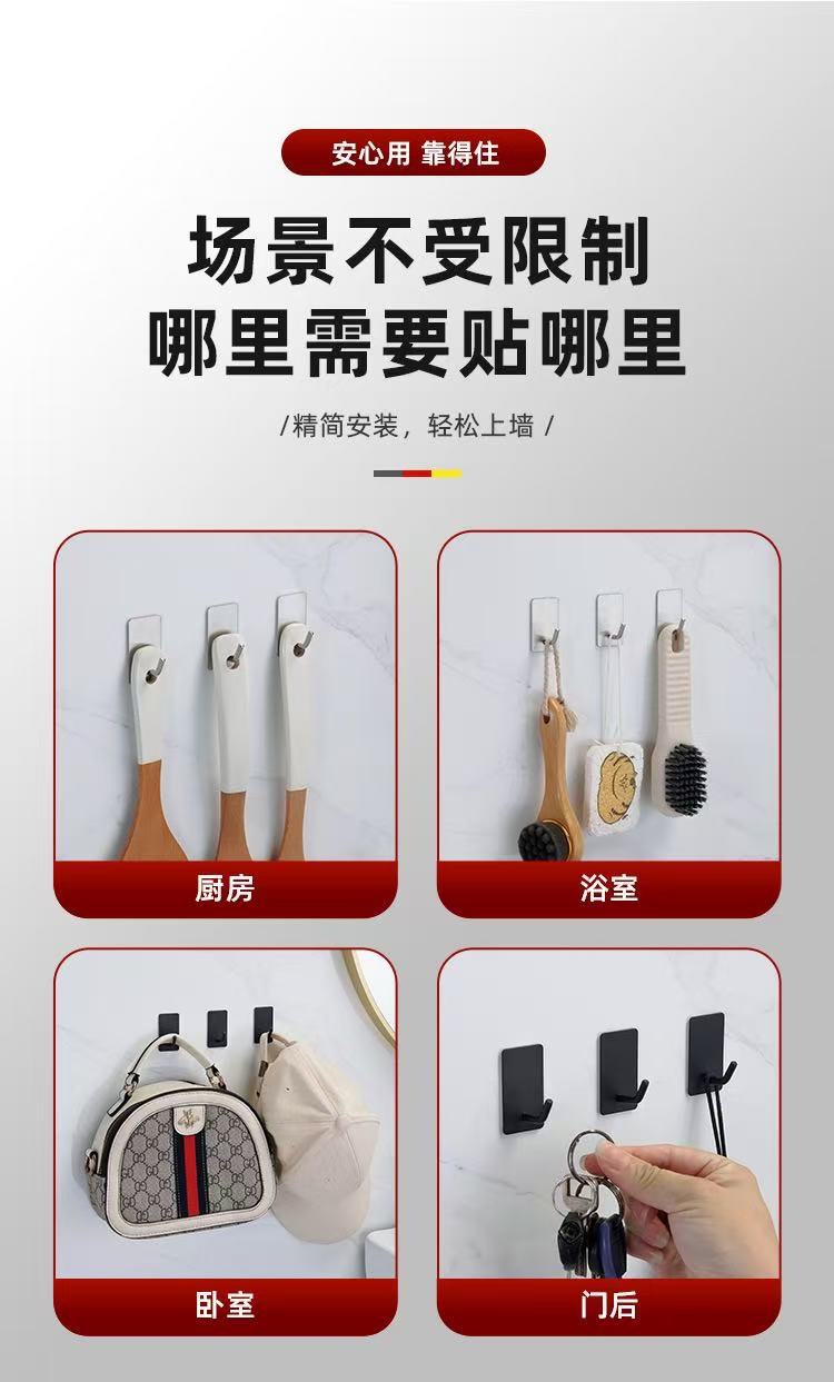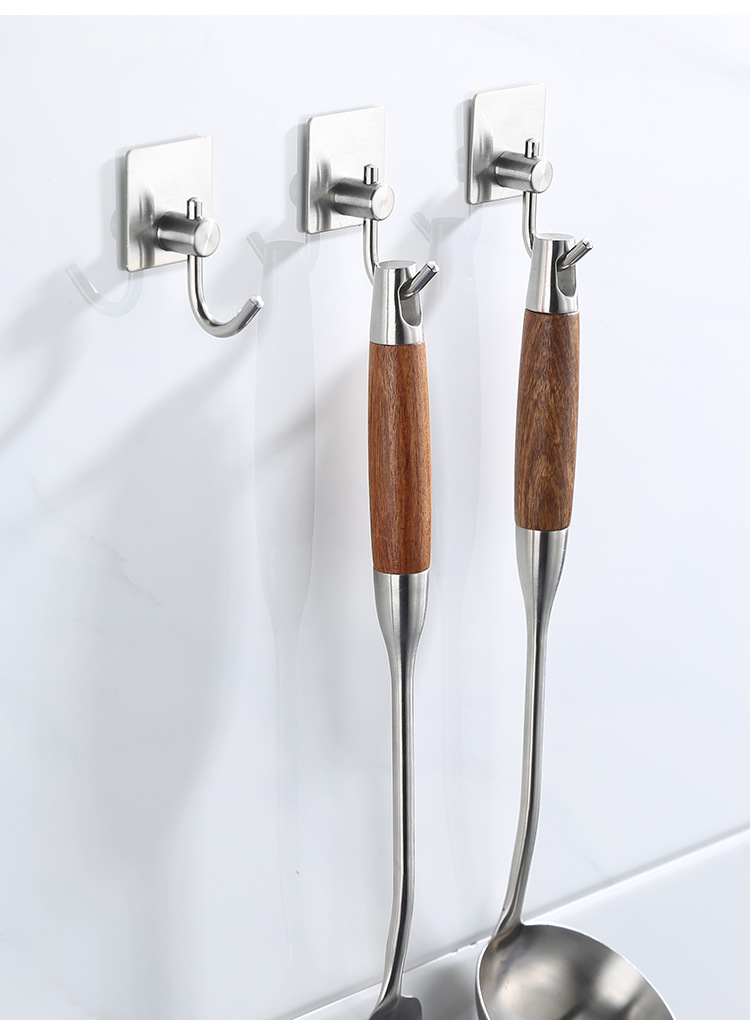 Gancho sin punzonado de acero inoxidable adhesivo fuerte pared de la cocina soporte de carga gancho colgante de pared ropa gancho de metal de uñas sin costura