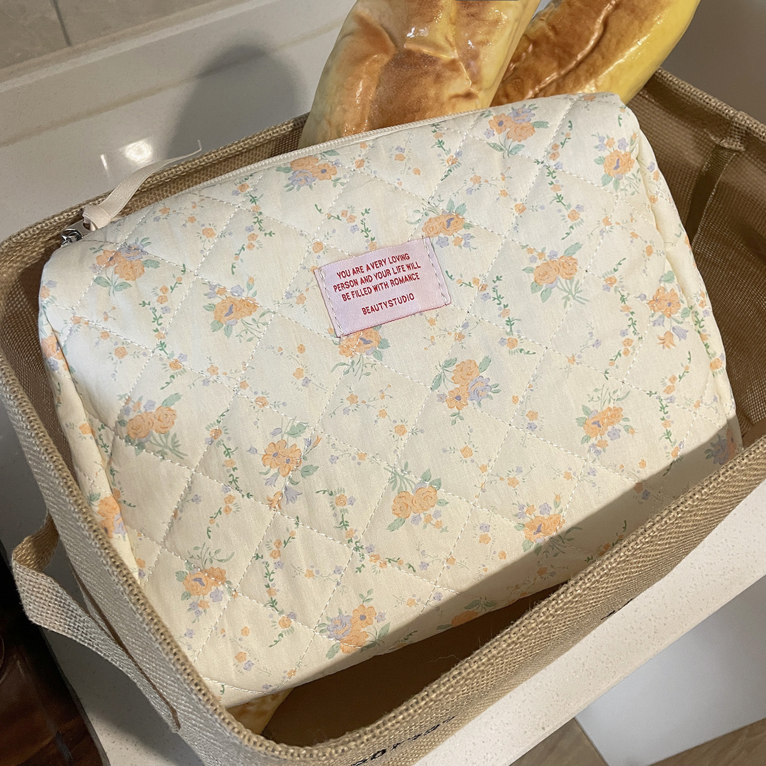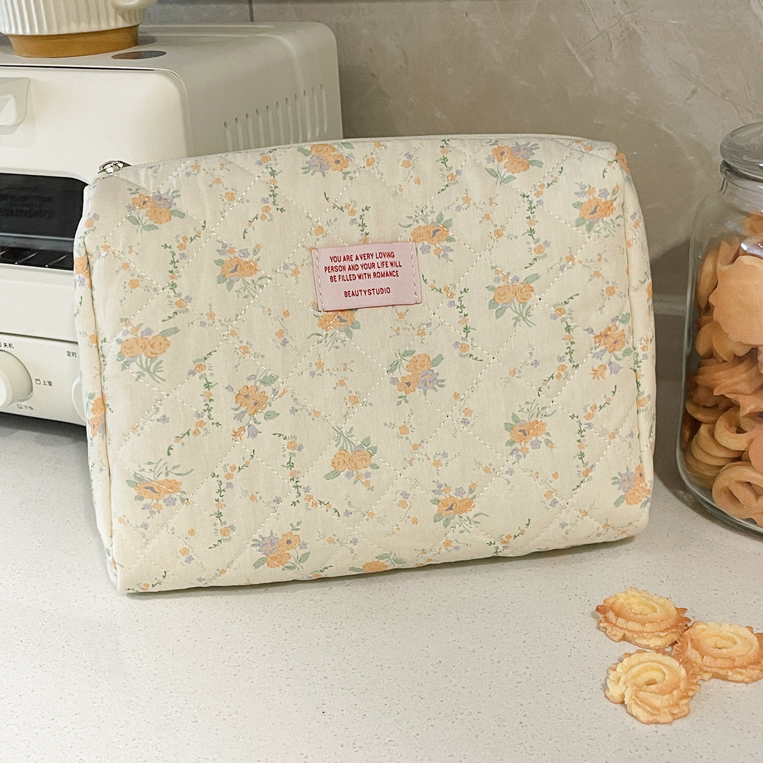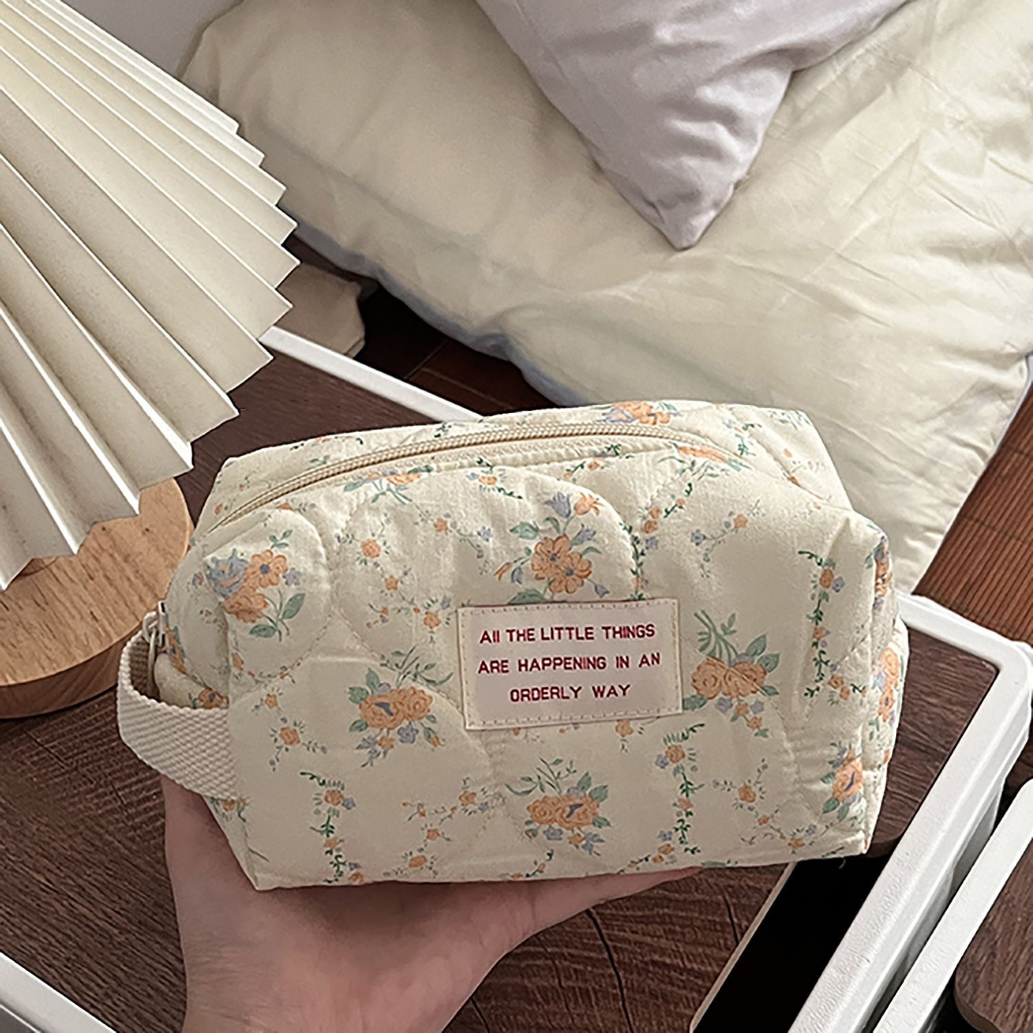 Crema floral bolsa de cosméticos bolsa de almacenamiento mujer estudiante de gran capacidad suave acolchado bolsa de algodón almohada embrague