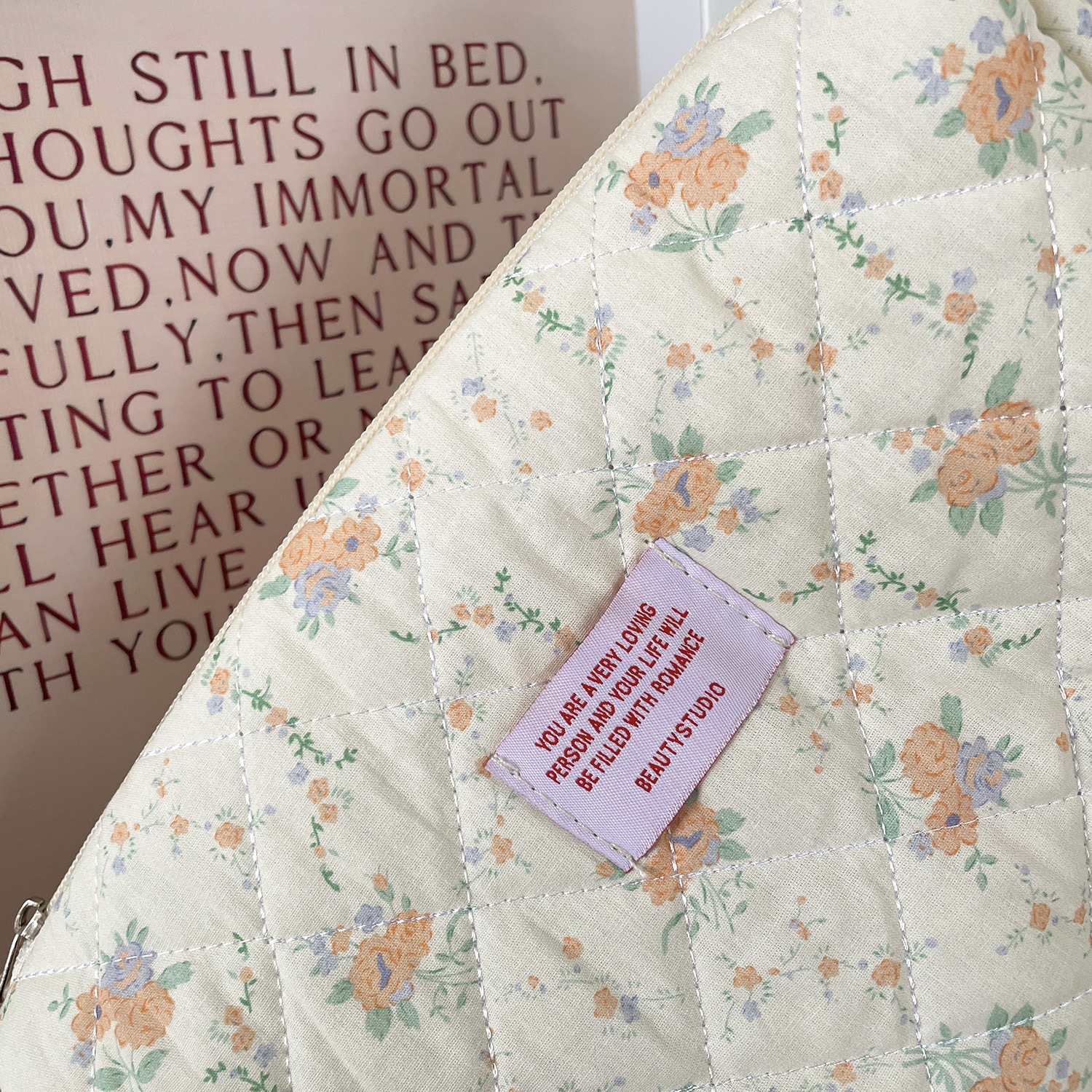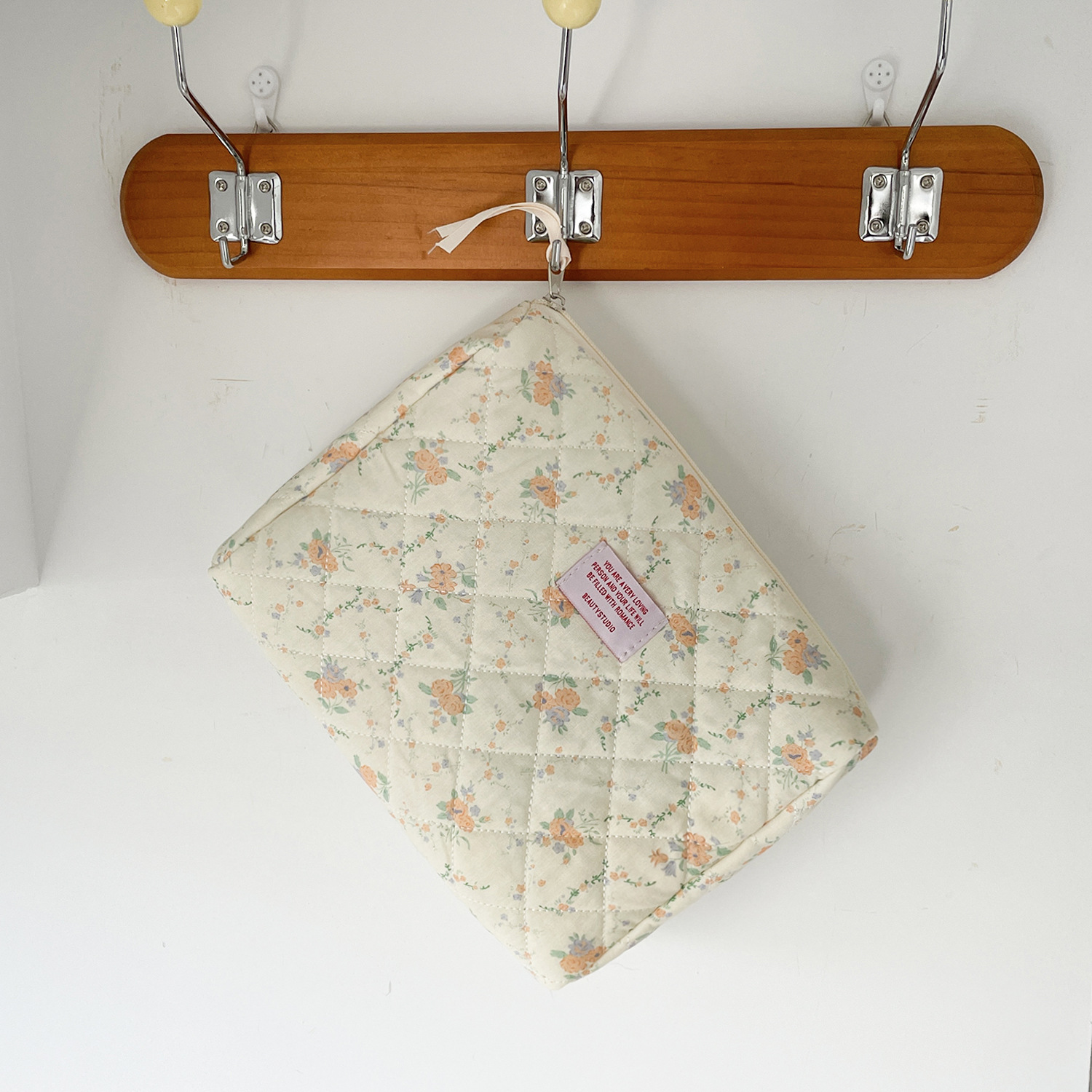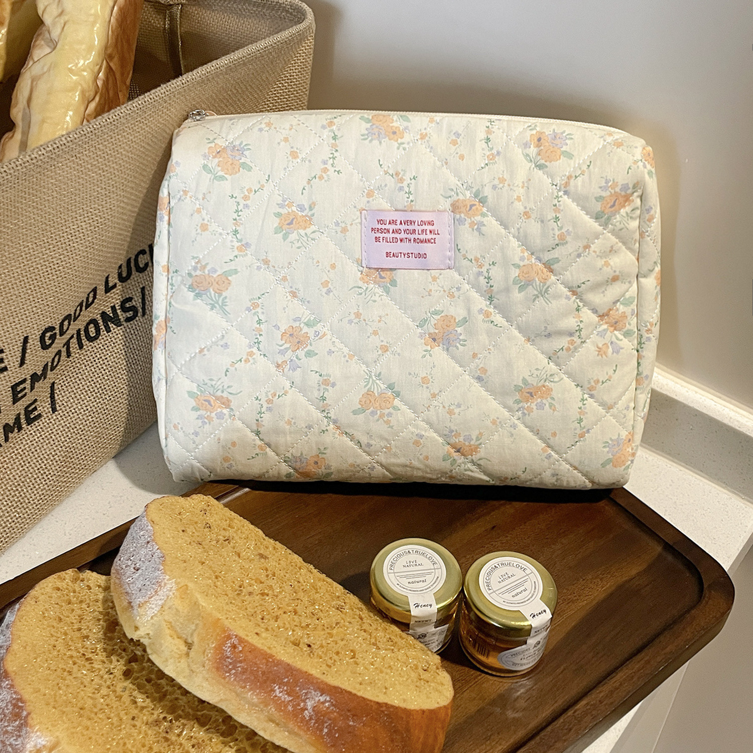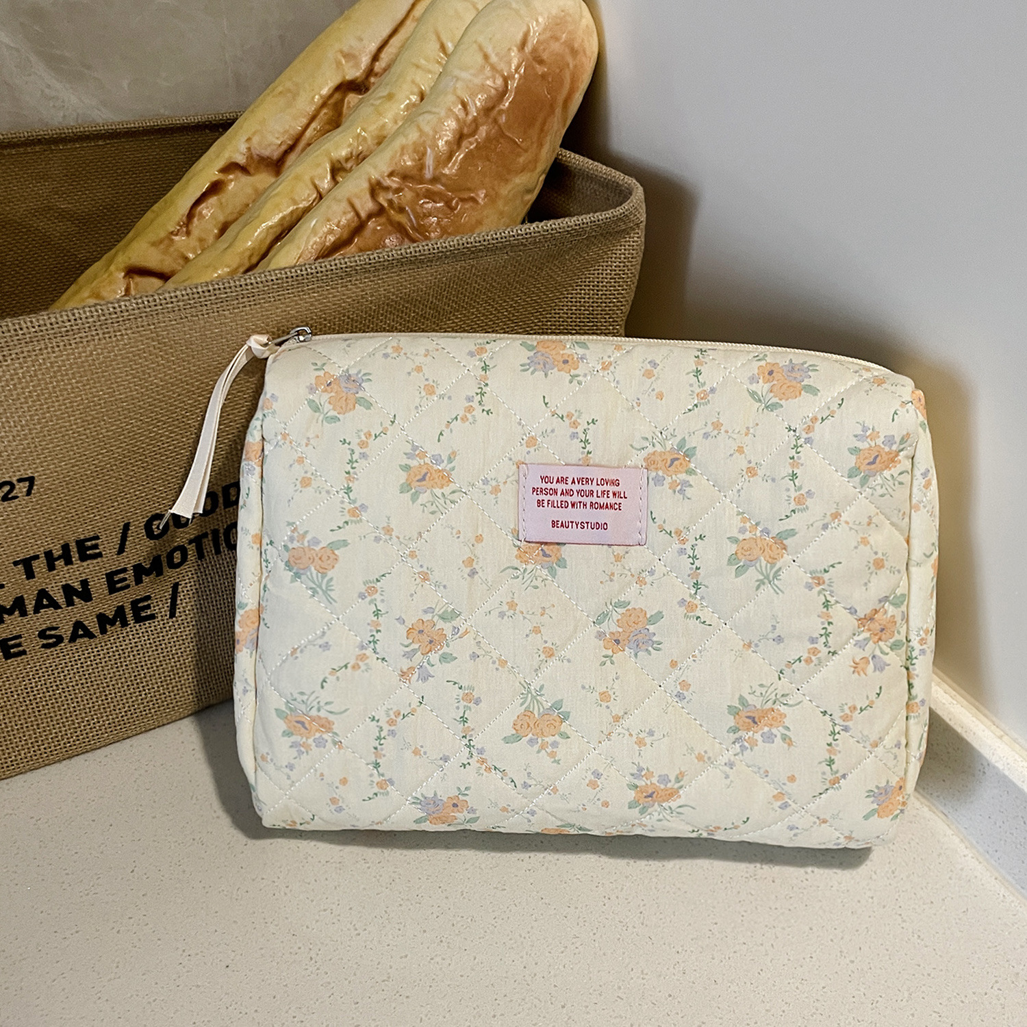 Crema floral bolsa de cosméticos bolsa de almacenamiento mujer estudiante de gran capacidad suave acolchado bolsa de algodón almohada embrague