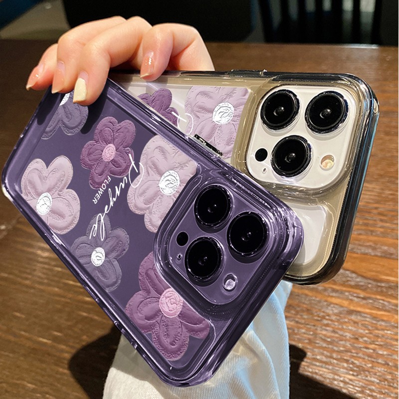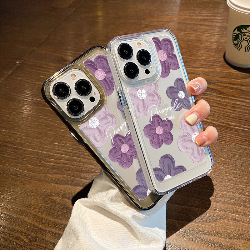 Ins púrpura pintura al óleo flor iPhone16PRO funda para teléfono 13 transparente 14 femenino xsmax lindo xr manzana 15