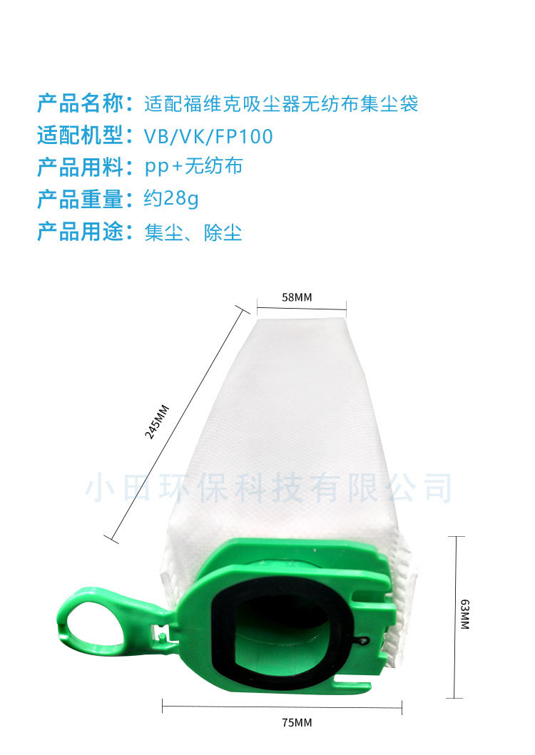 Aplicable a los accesorios de aspiradora Vorwerk Flick FP100/VB100 bolsa de polvo bolsa no tejida al por mayor