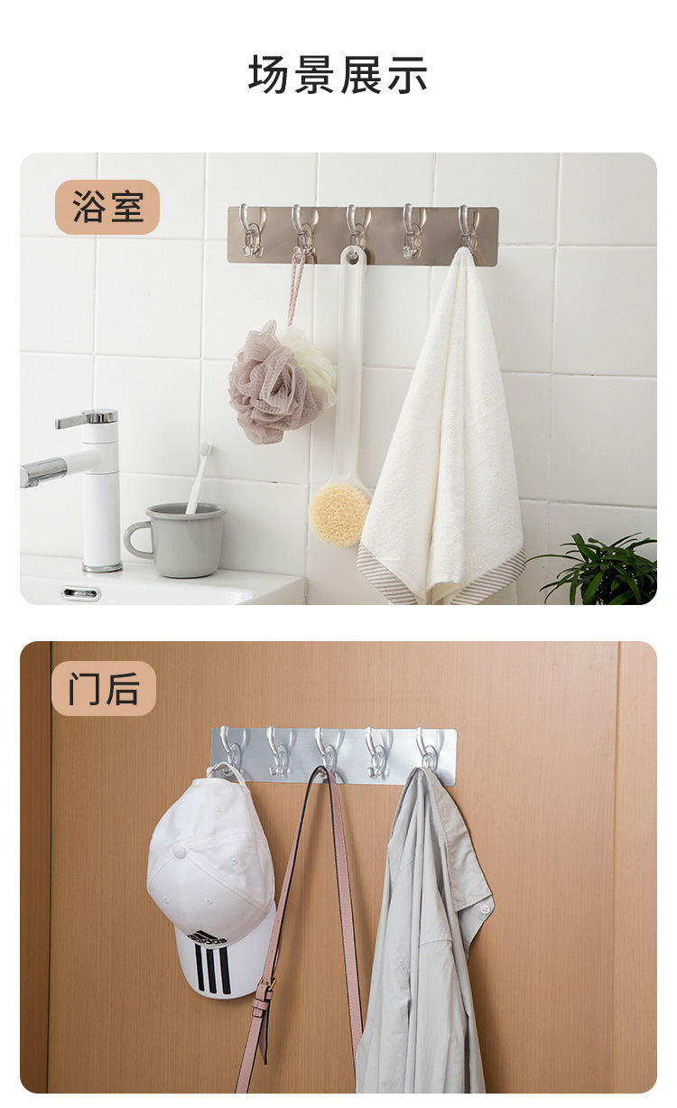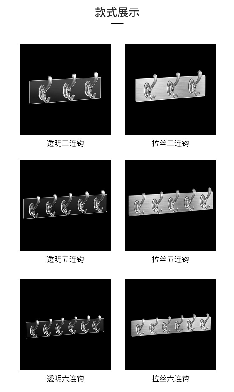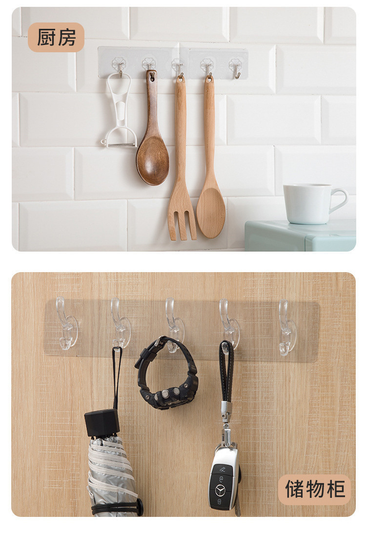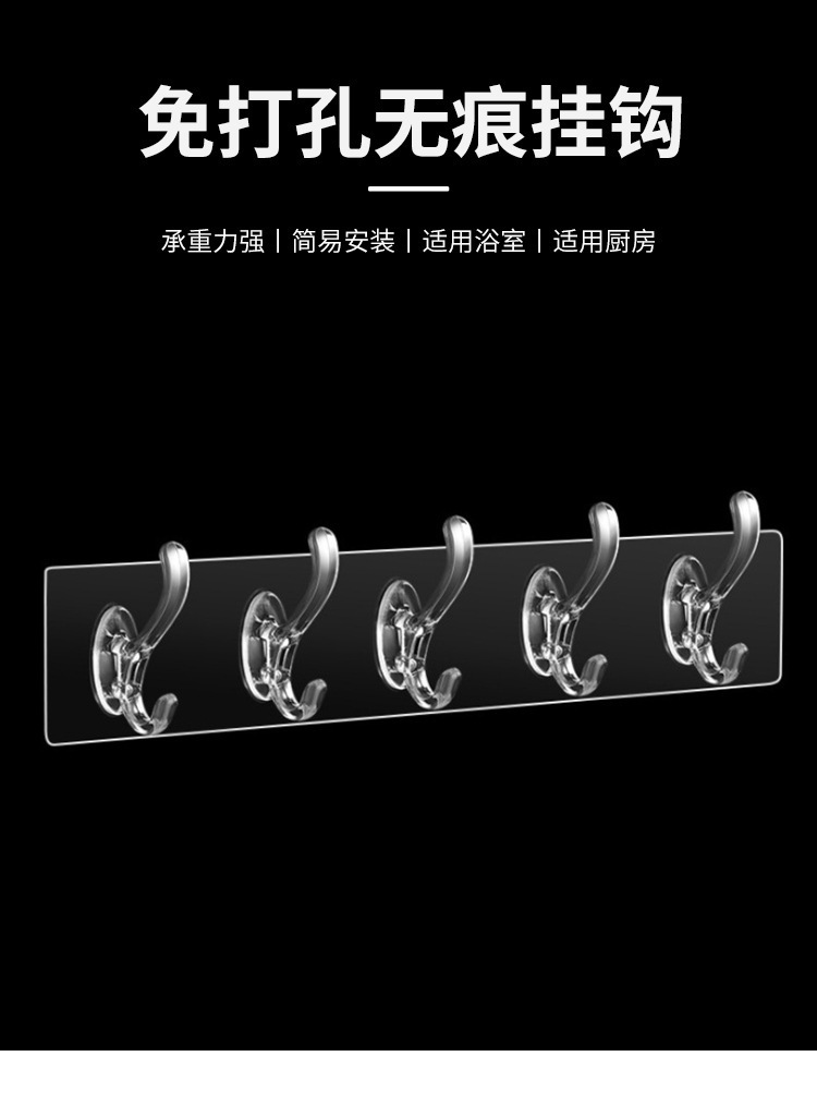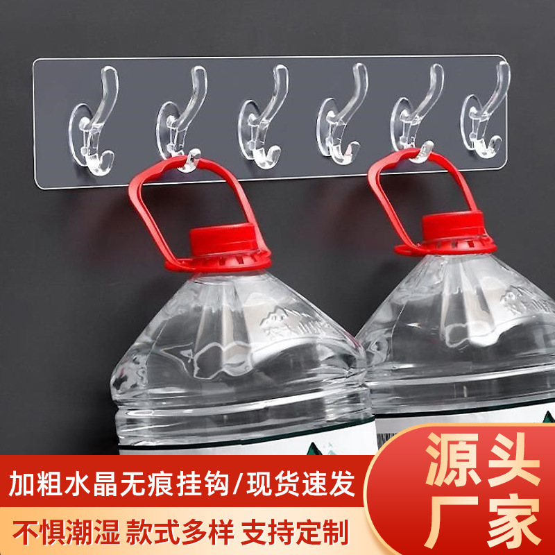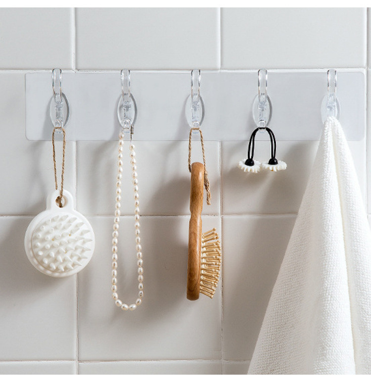 Gancho de la capa de cristal fila del hogar sin perforador largo transparente Puerta de carga trasera cocina gancho de baño
