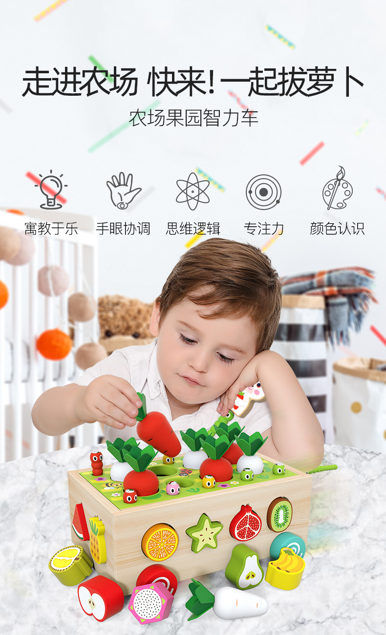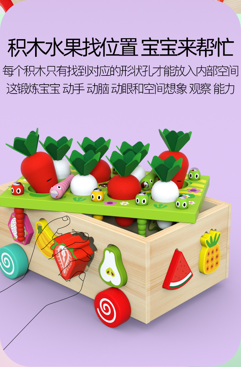Los niños multifuncionales de madera digital fruta forma animal bloques de construcción rábano poroso juego forma inteligencia Coche