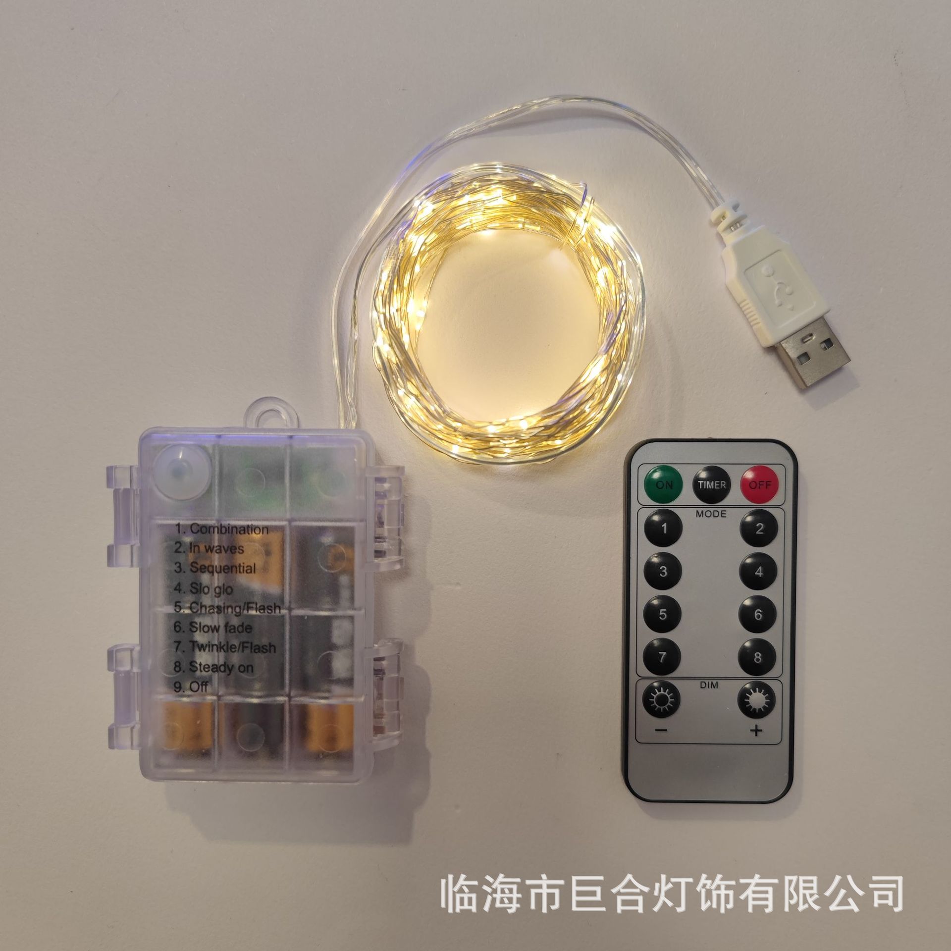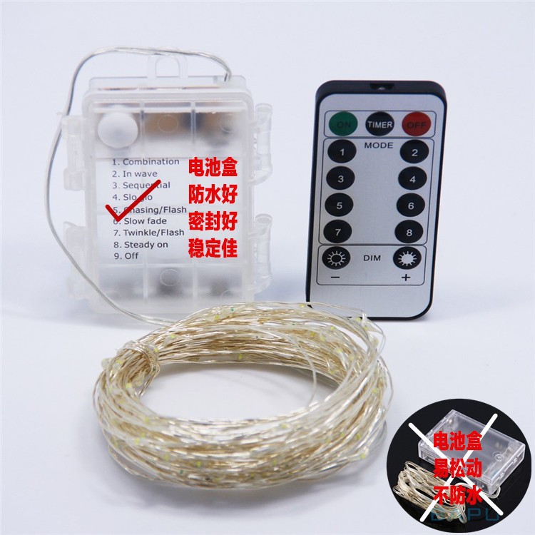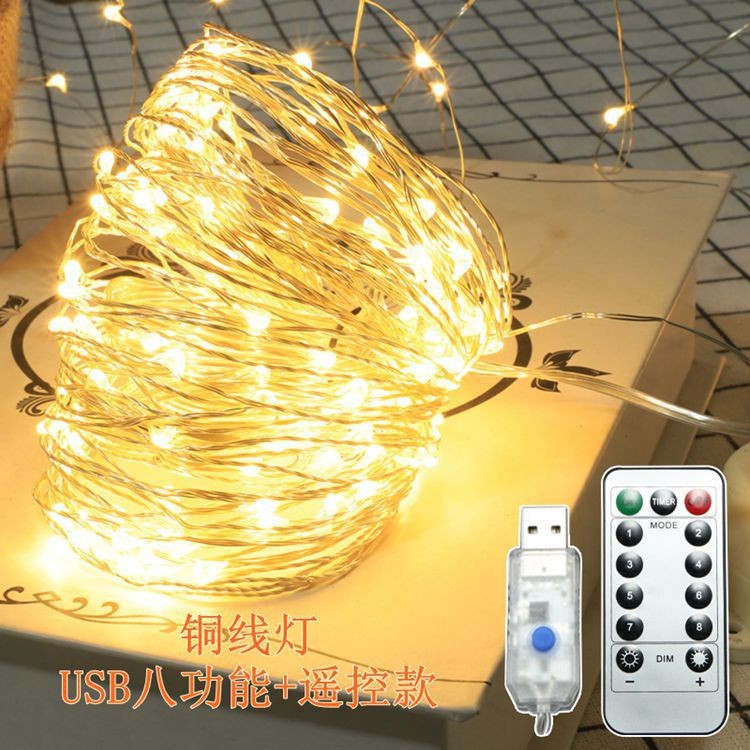 Cadena de luz LED ocho funciones USB caja de batería impermeable control remoto cable de cobre Cadena de luz Cable de cuero Cadena de Luz Decoración de Navidad Cadena de luz de color