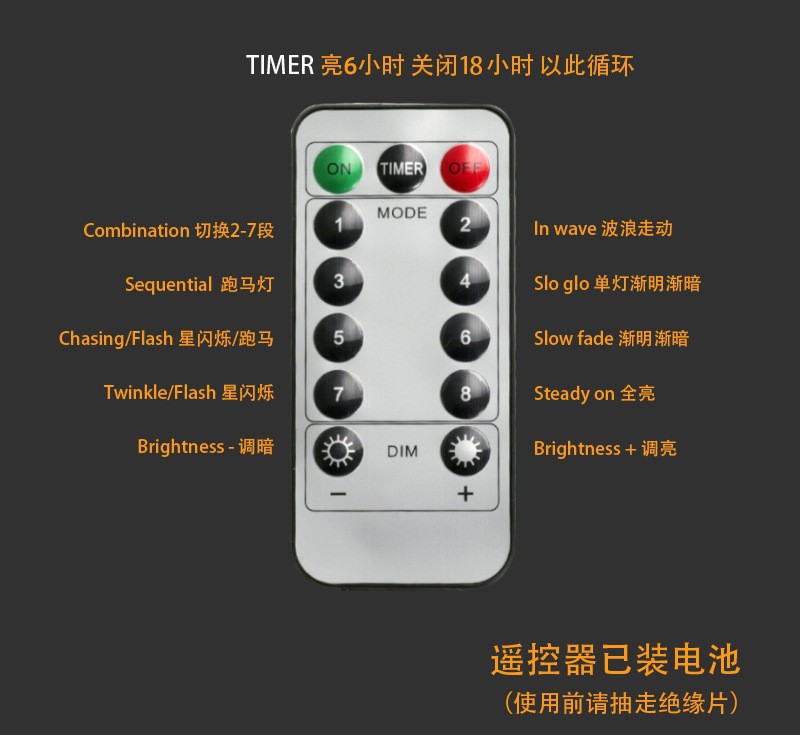 [Caja de batería + control remoto] (20 m 200 luces)