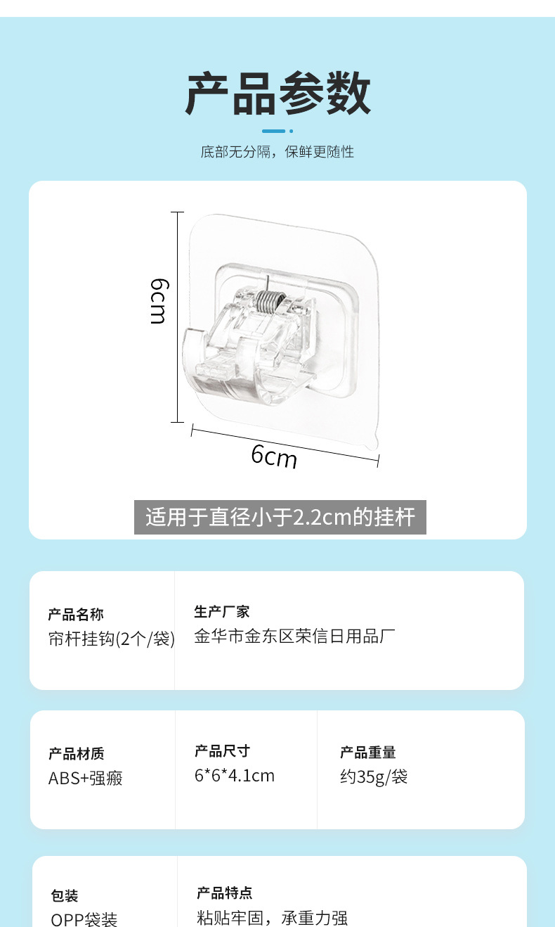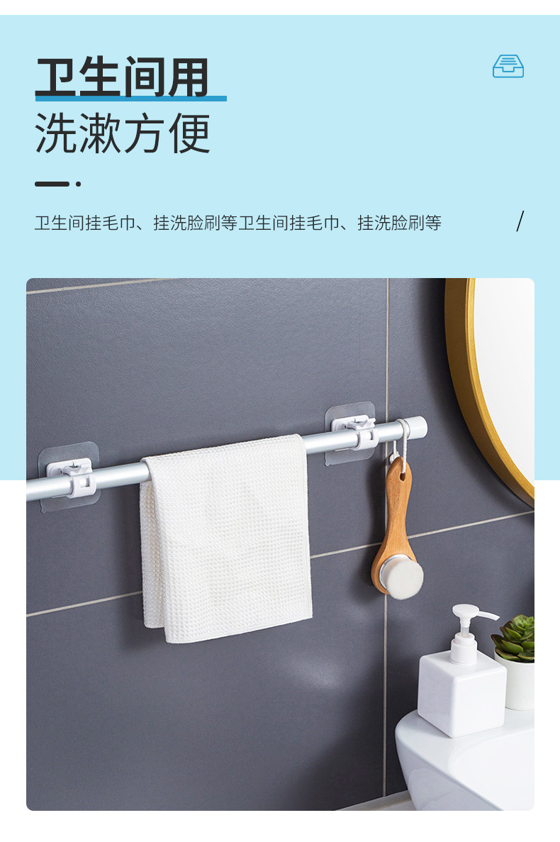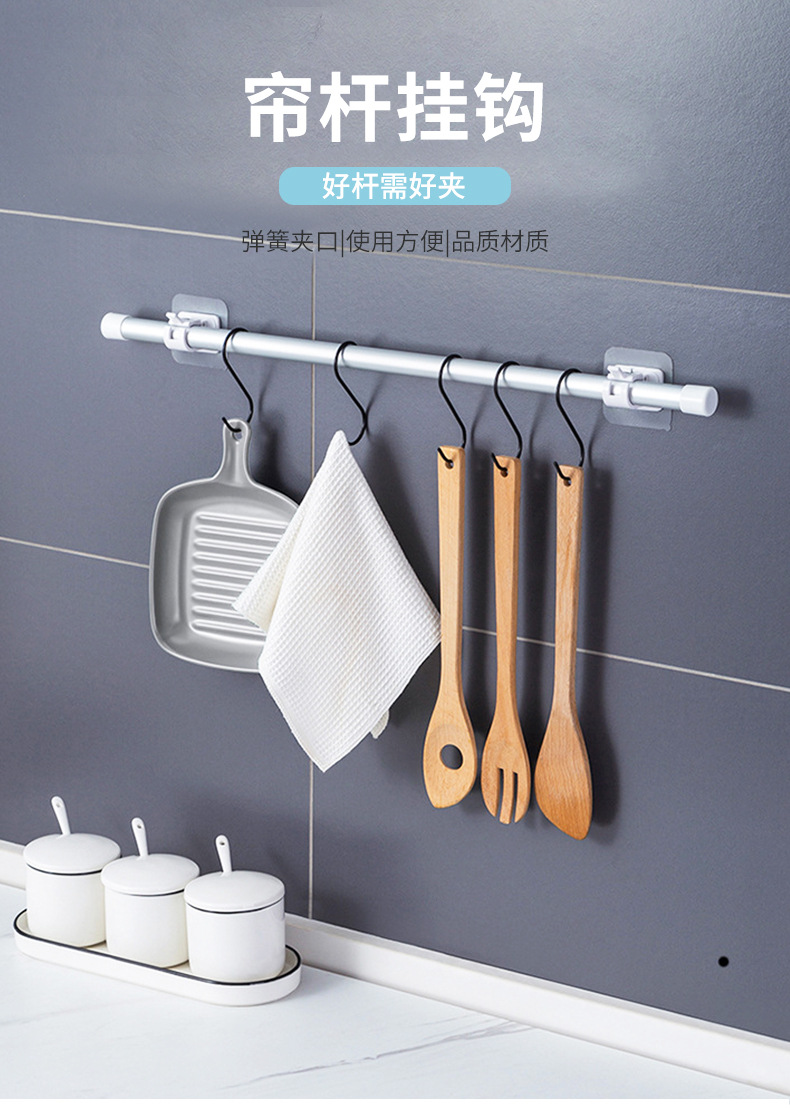 Barra de cortina sin costura de estilo japonés barra de cortina fija pegatina toalla Rod Hook barra de cortina fija clip hebilla paquete múltiple