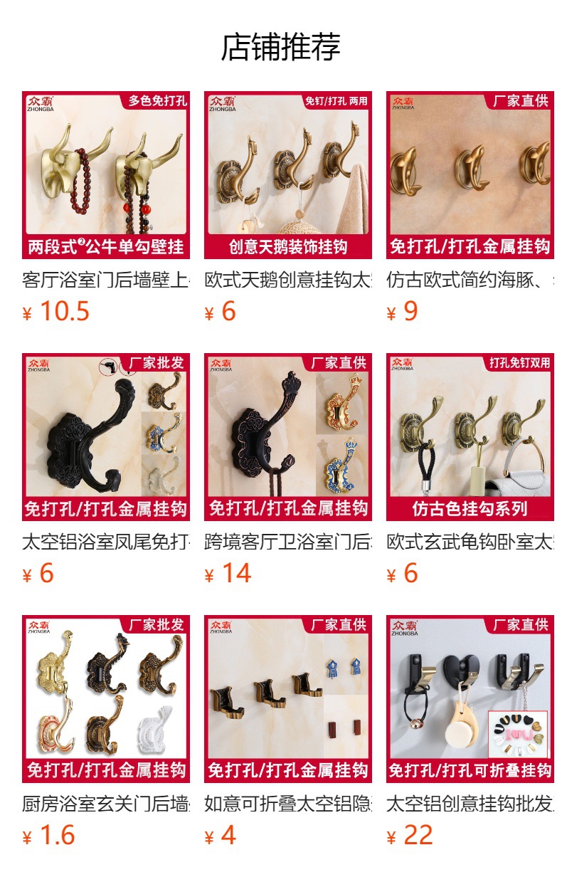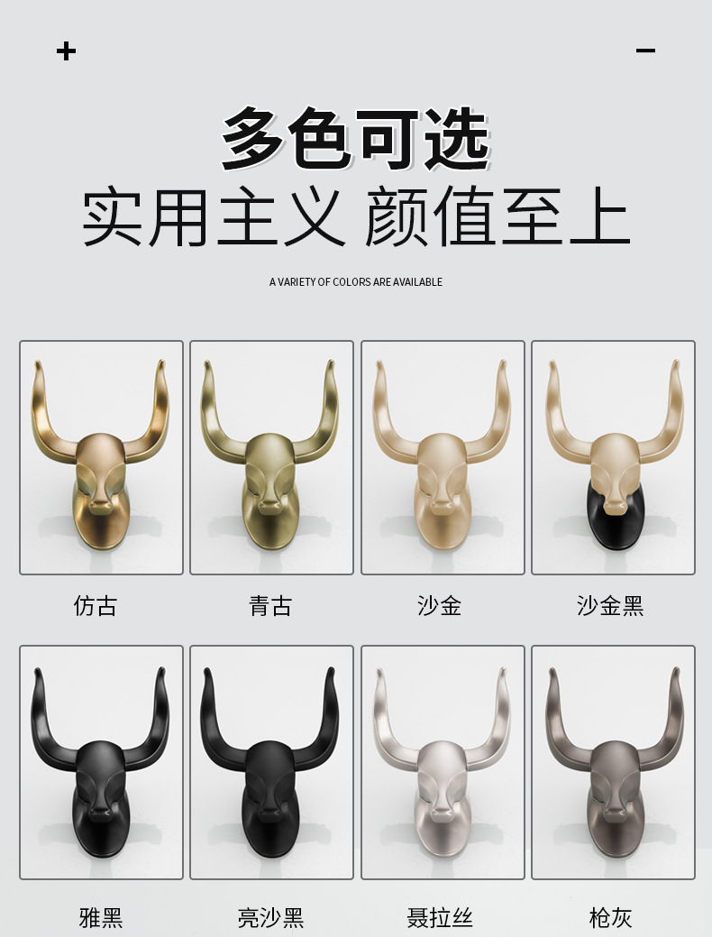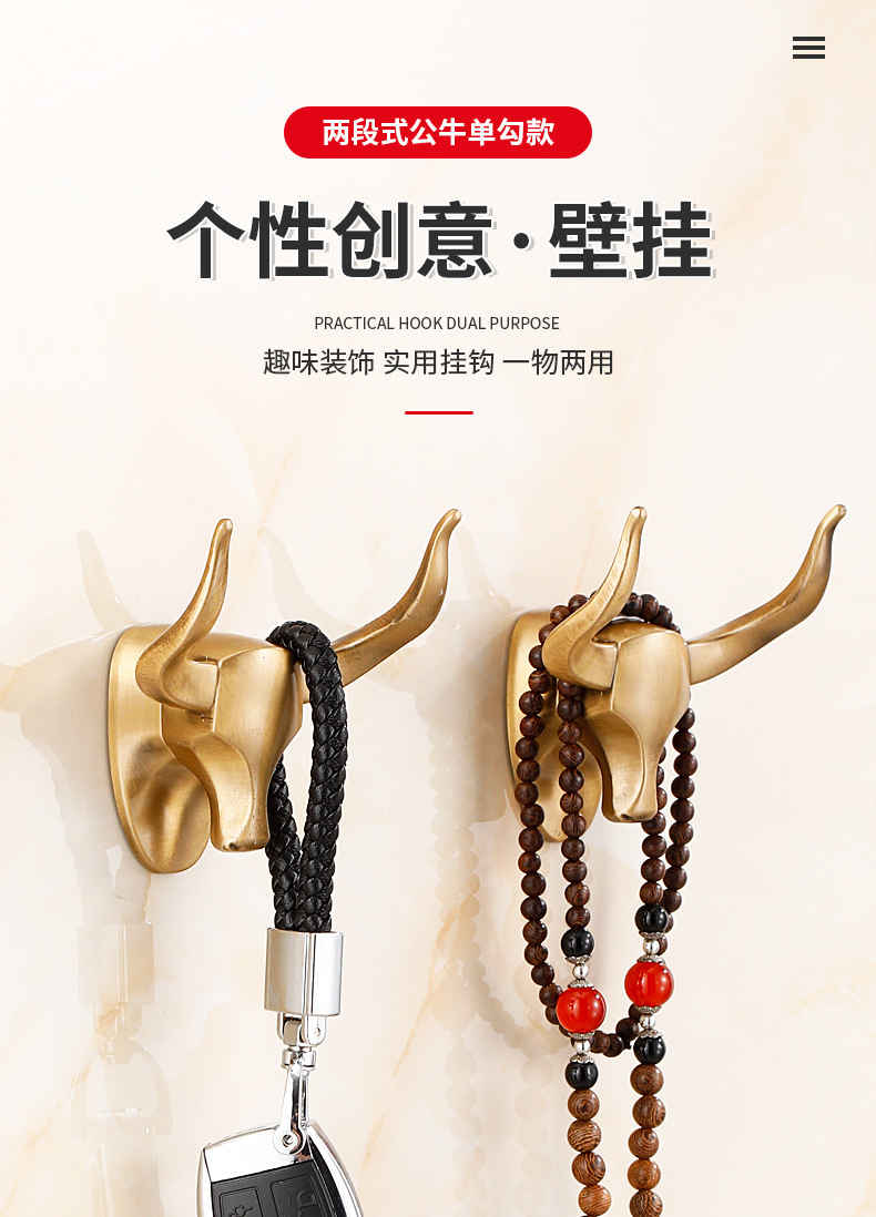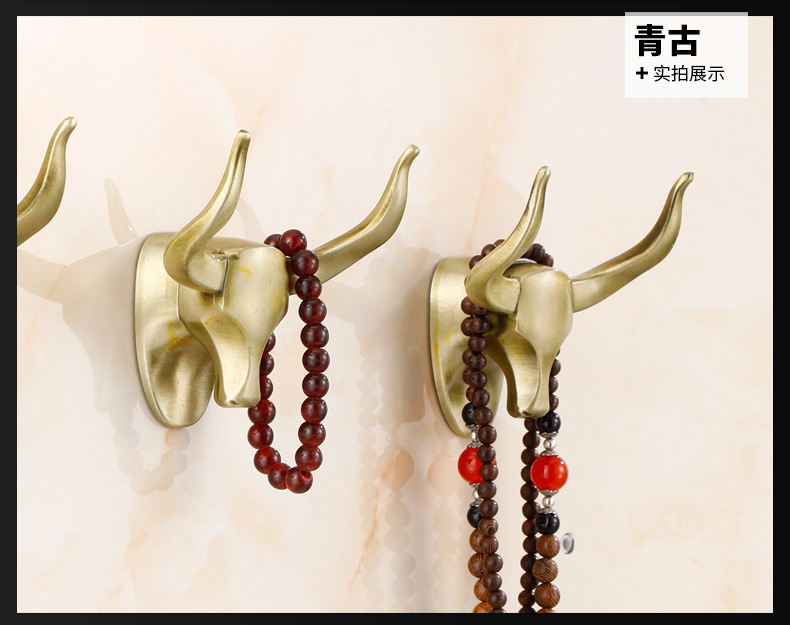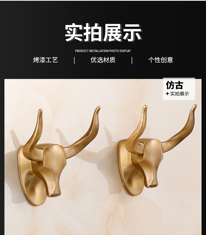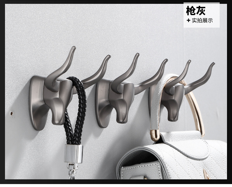 Espacio de aluminio Cabeza de Vaca retro solo gancho al por mayor baño creativo colgante de pared gancho de la capa puerta de la sala de estar gancho trasero Punch-libre
