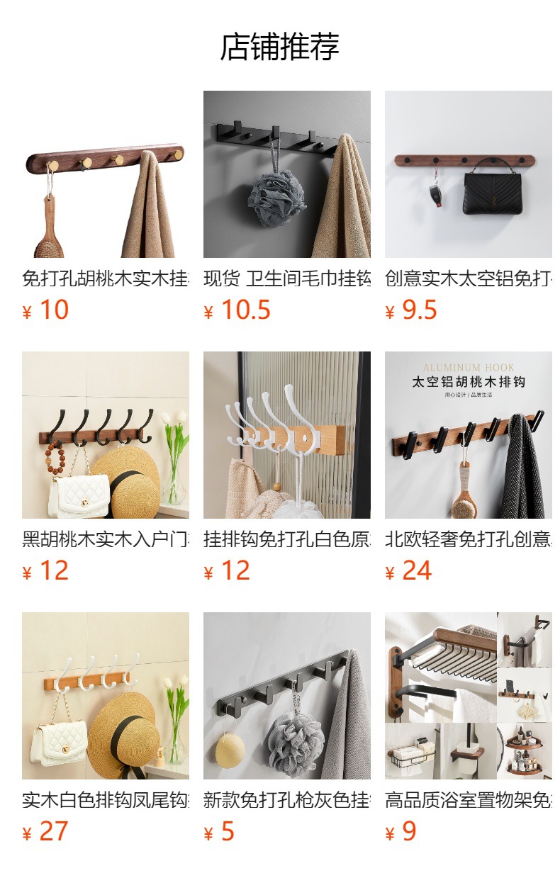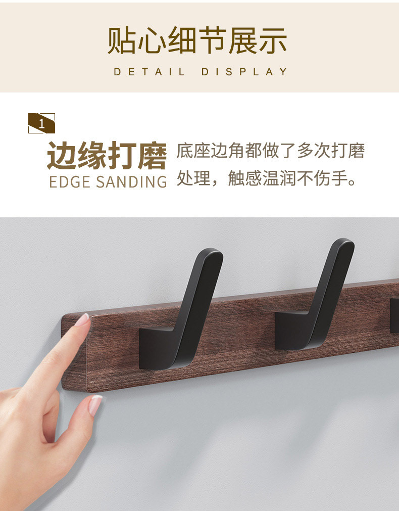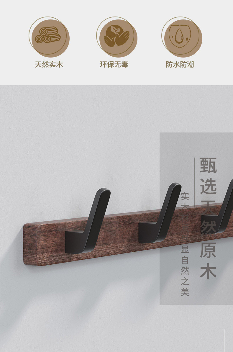 Cuarto de baño gancho de ropa de nogal negro gancho de ropa de baño gancho de toalla gancho de ropa gancho de fila oblicua gancho nórdico