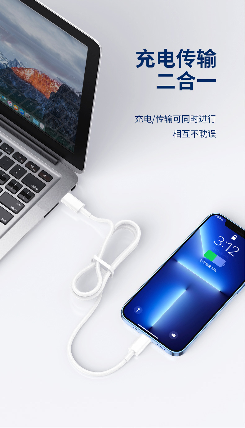 Aplicable a Apple 14 cable de carga 30Wpd cable de datos de carga rápida typec lightning20W3 m cable largo
