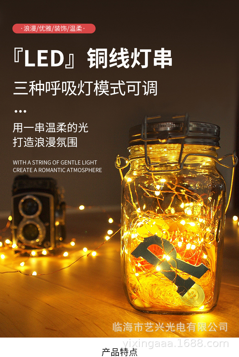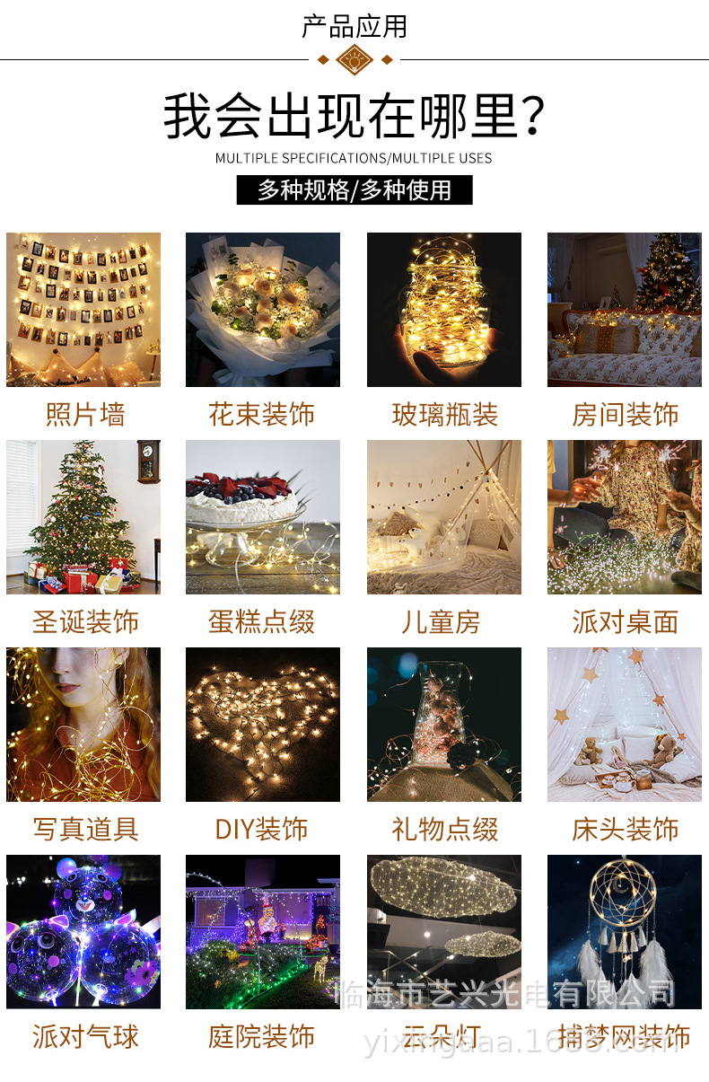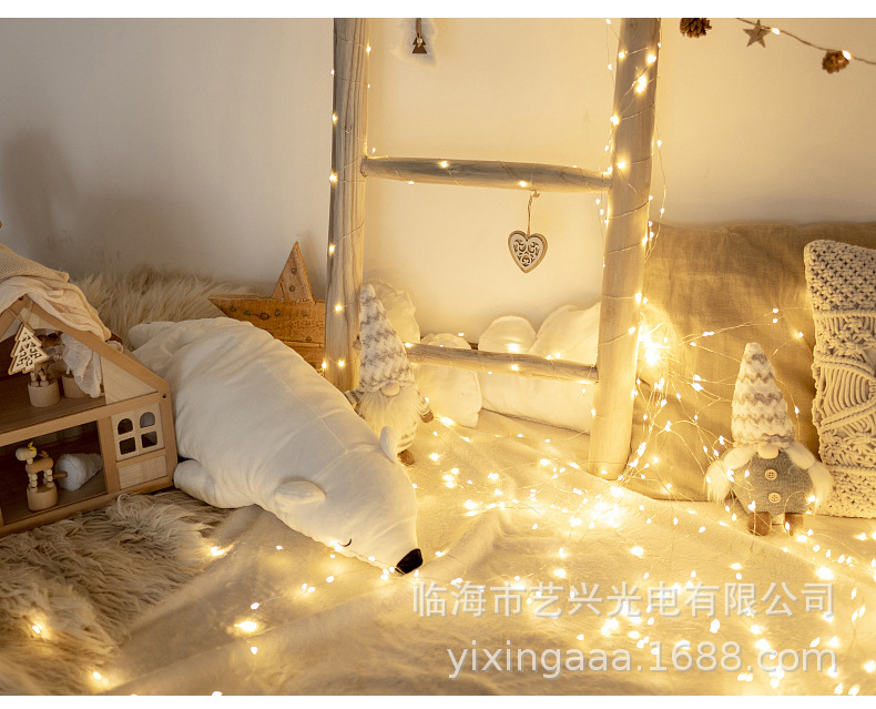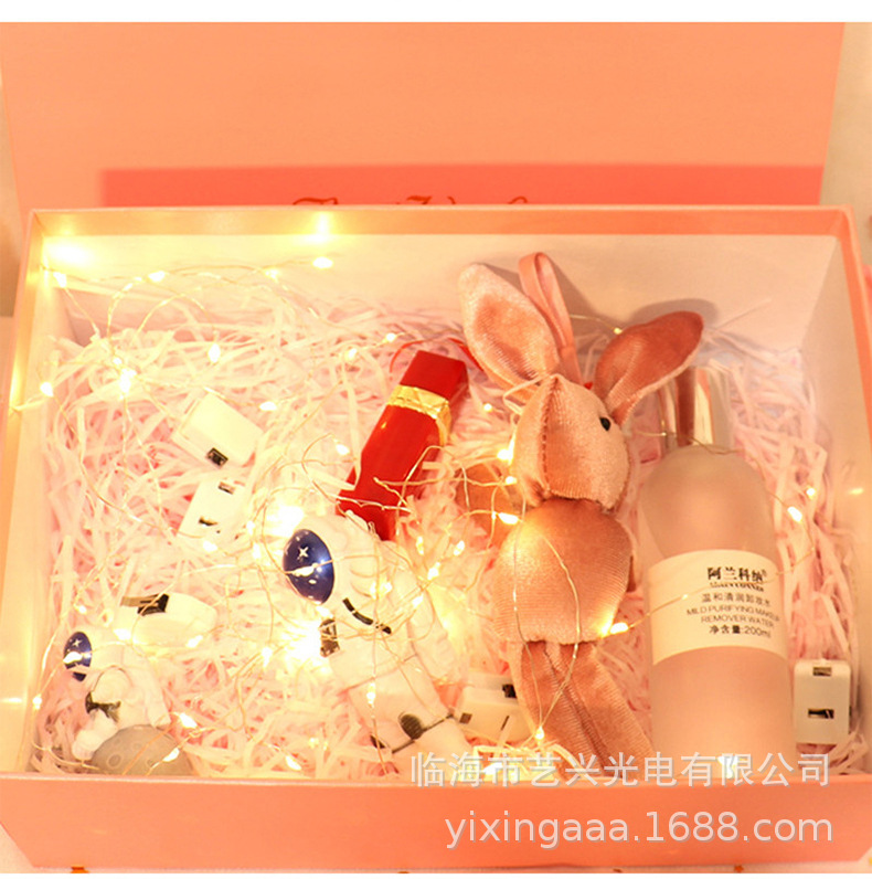 Venta al por mayor cadena de luz LED flor pastel onda bola caja de regalo decoración luz intermitente botón interior alambre de cobre Cadena de luz cielo estrellado