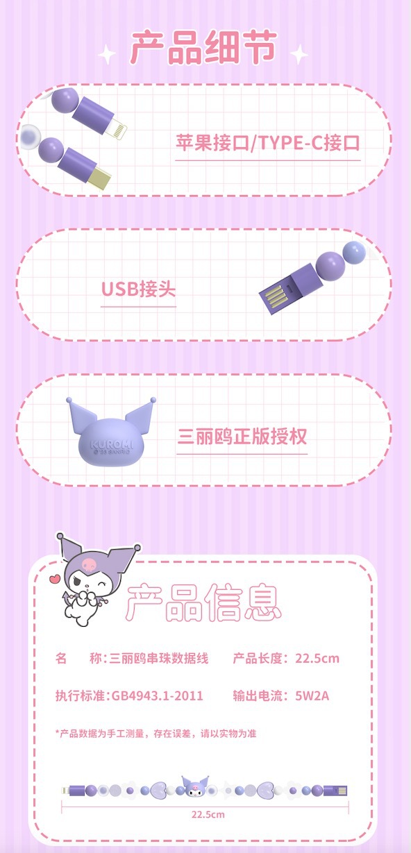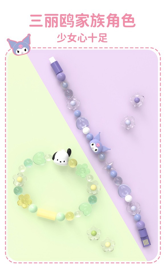 Nuevo producto Sanrio Kulomi Pulsera Cable de datos Accesorios de regalo para niñas Cargador de teléfono móvil portátil y ligero