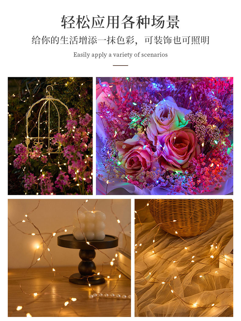 Luz de cadena de alambre de cobre LED transfronteriza ramo impermeable Luz de cadena de alambre de cobre USB decoración de caja de regalo Caja de batería LED Luz de cadena de alambre de cobre