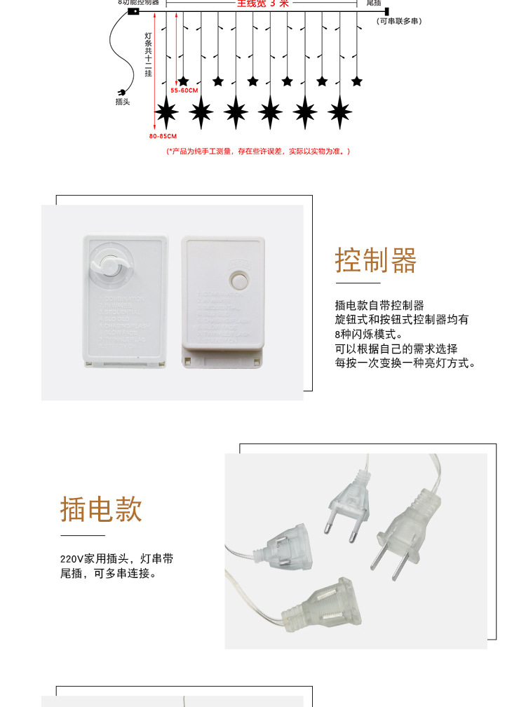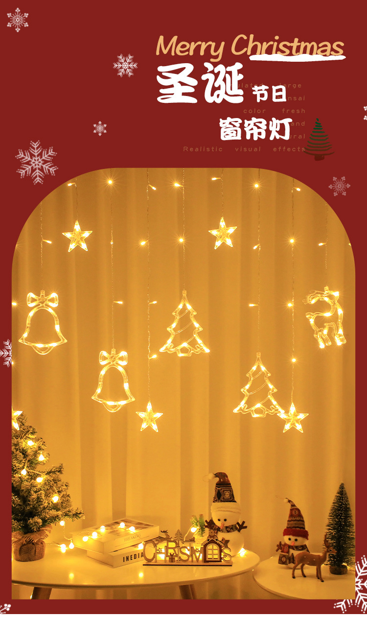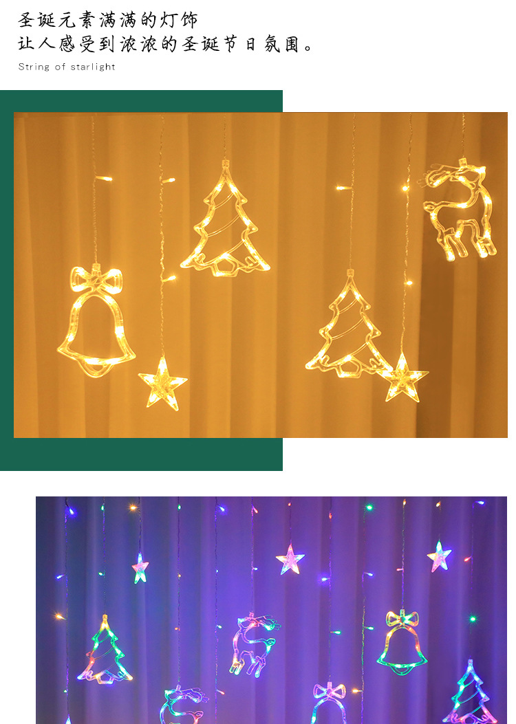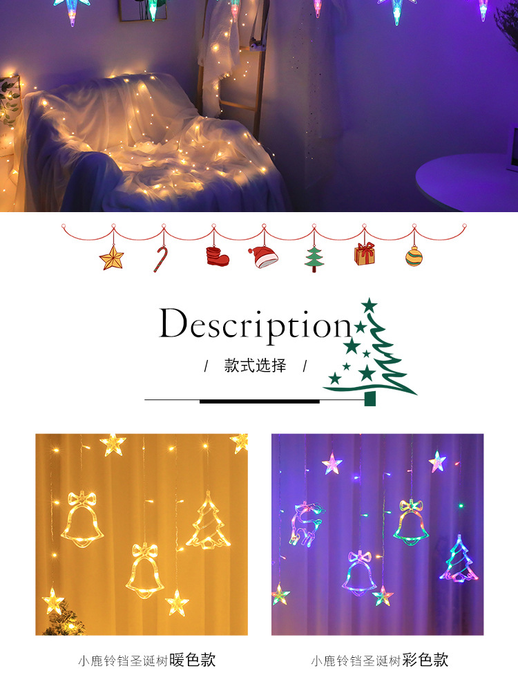 Navidad combinación cortina luz red luz roja decoración de la habitación dormitorio decoración Festival color luz intermitente Cadena de luz cielo estrellado