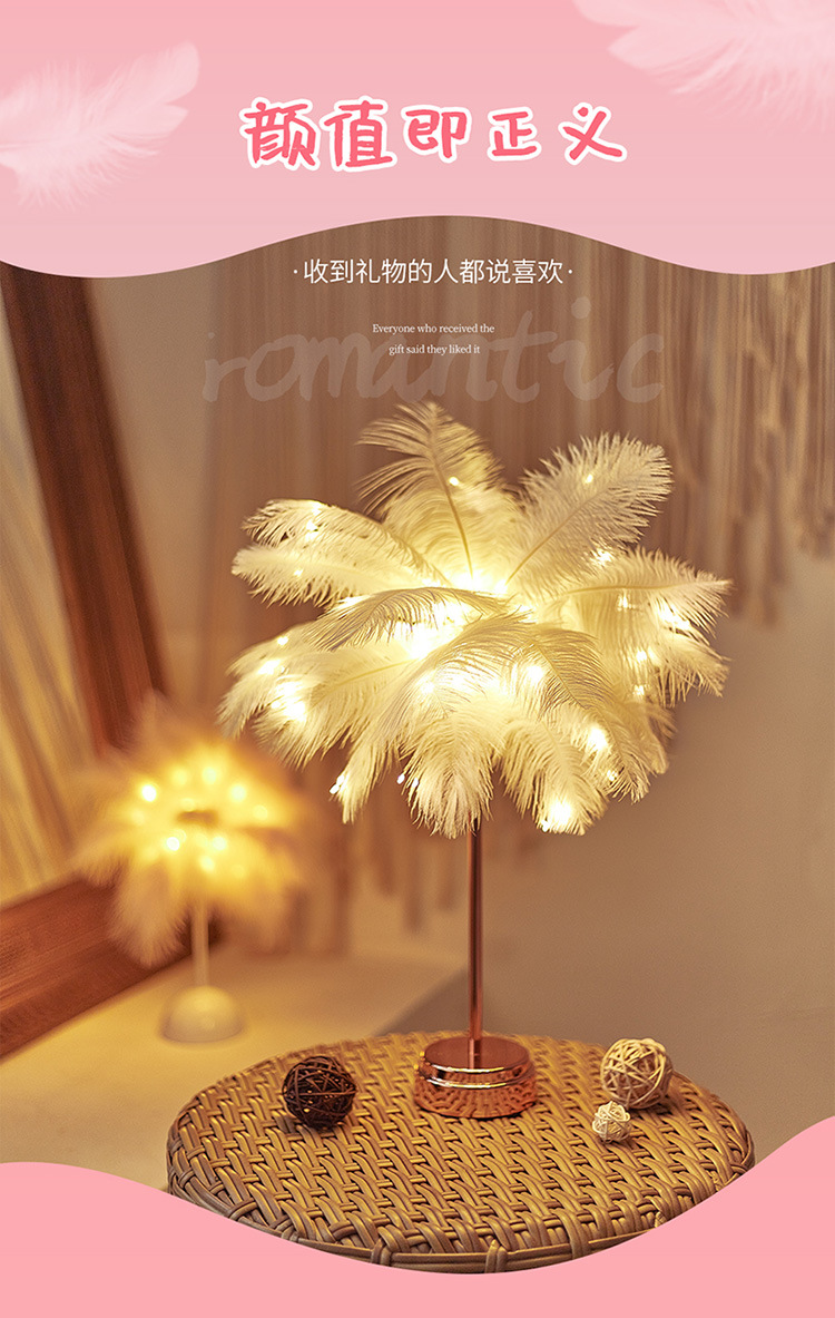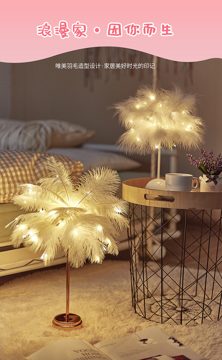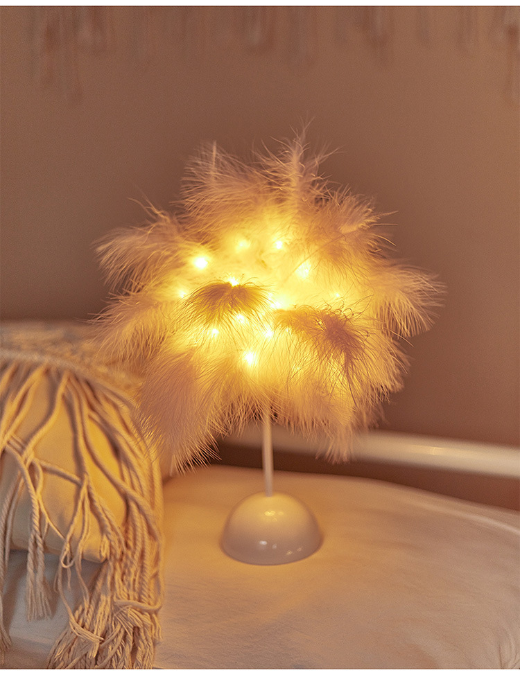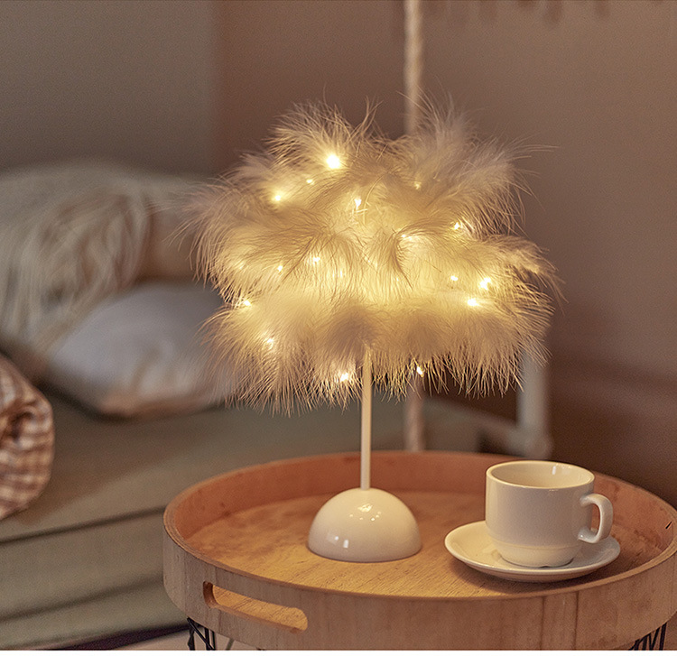 Fábrica LED pluma lámpara de mesa lámpara de noche luz dormitorio ins chica corazón lámpara de noche moderna decoración de la boda pequeña lámpara de color