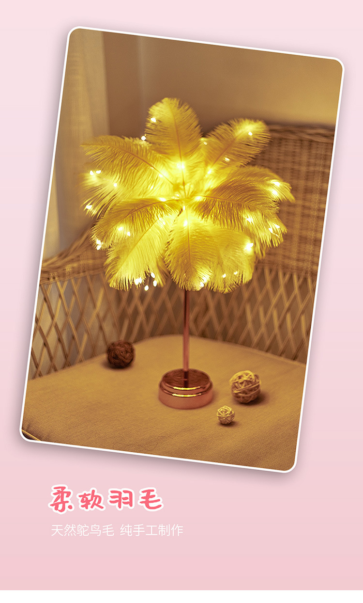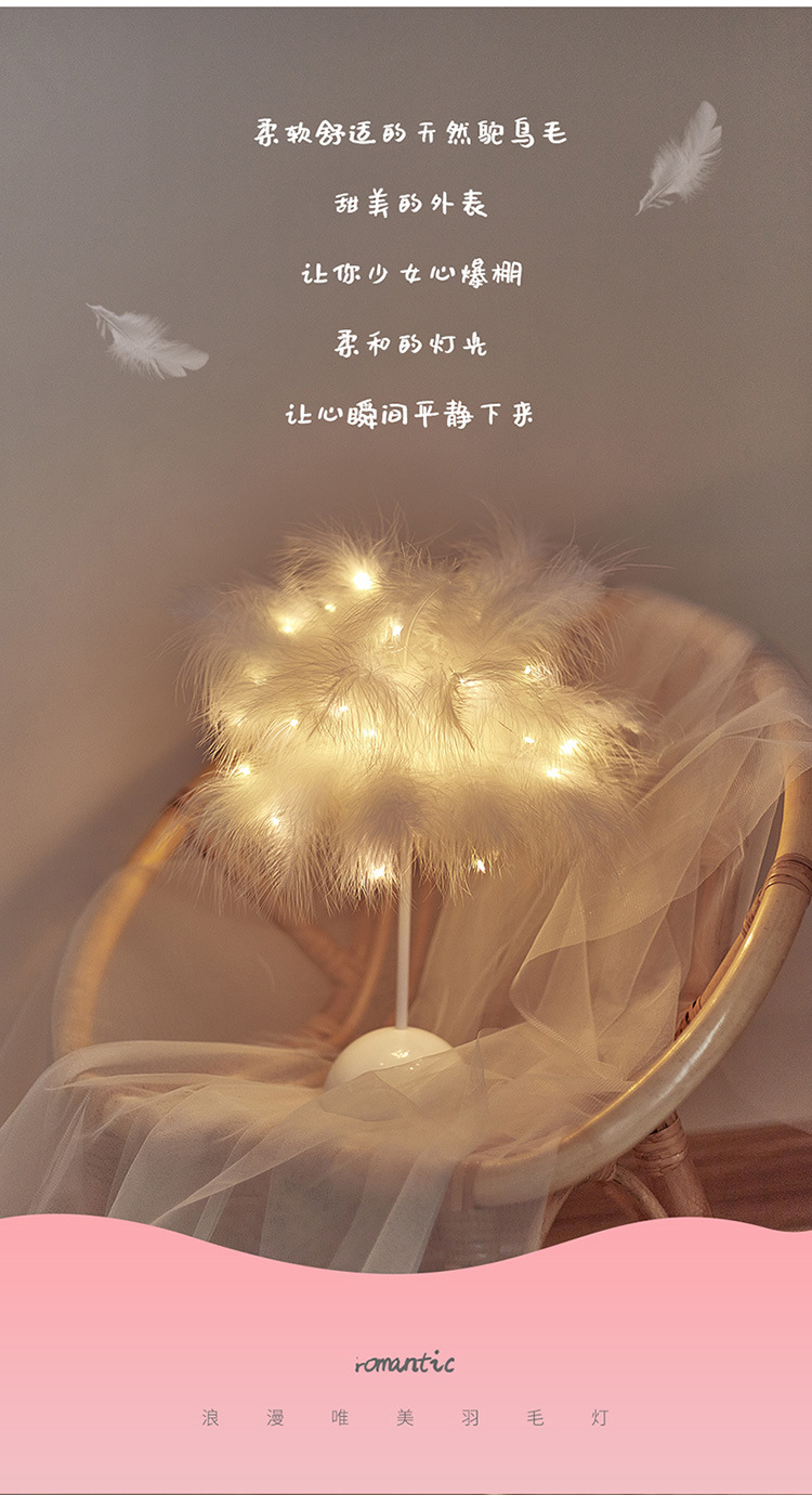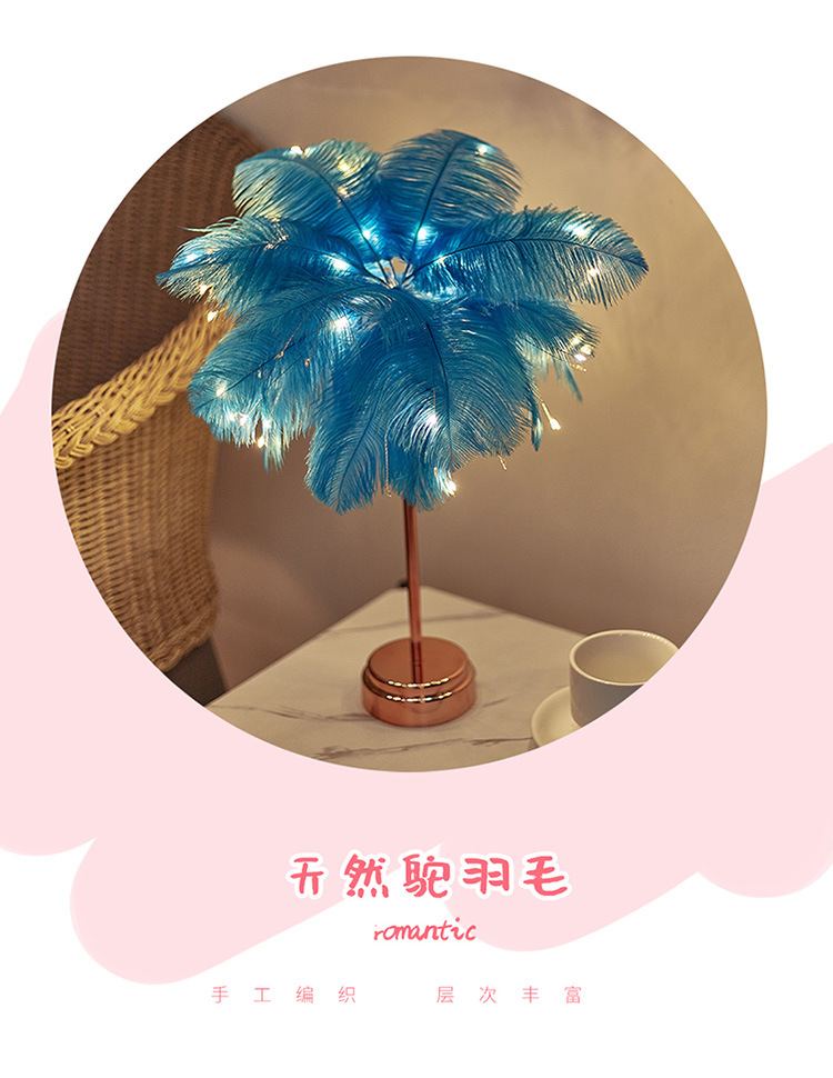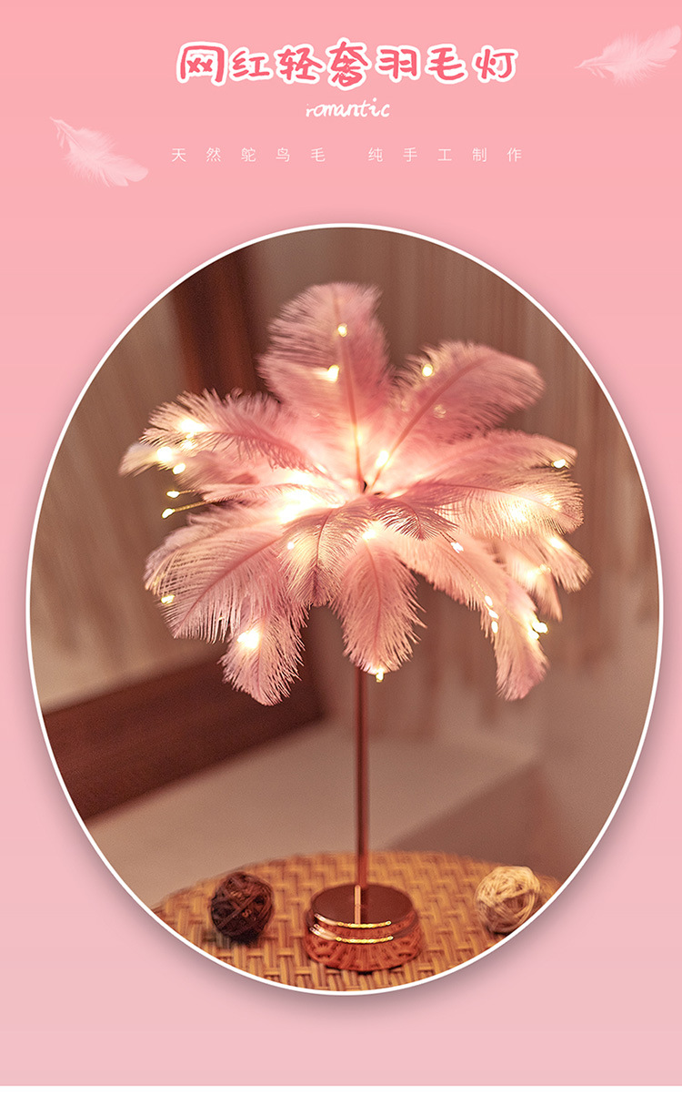 Fábrica LED pluma lámpara de mesa lámpara de noche luz dormitorio ins chica corazón lámpara de noche moderna decoración de la boda pequeña lámpara de color