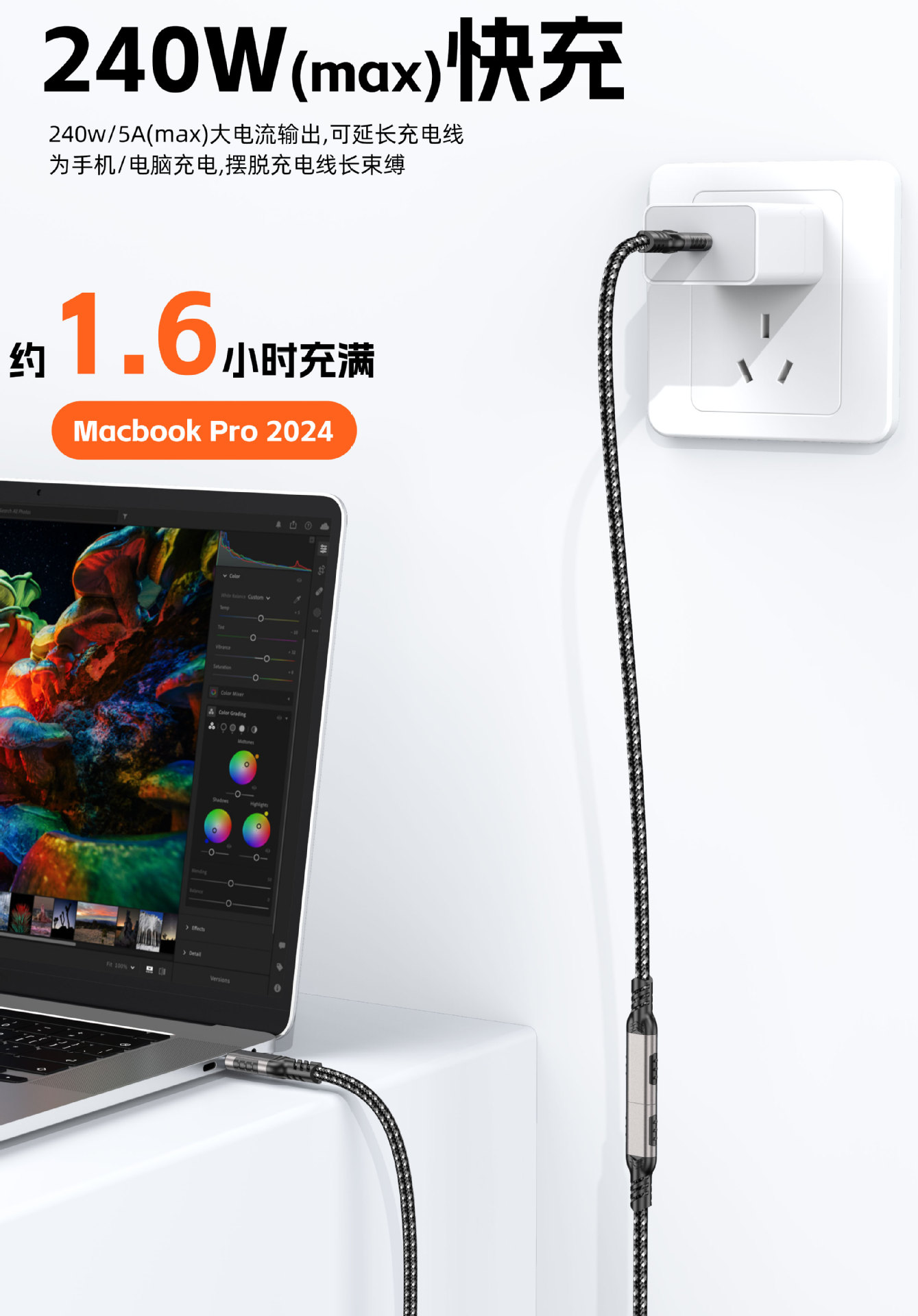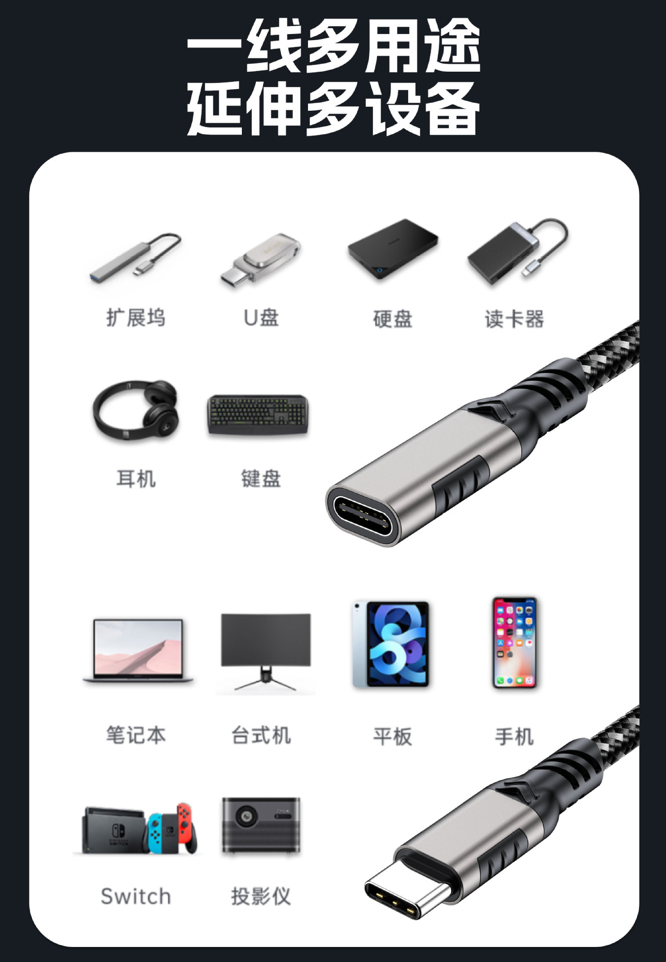 Cable de extensión Type-C Cable de pantalla de proyección 4K macho a hembra 20Gbps estación de acoplamiento de alta velocidad para expandir los datos del disco duro a la computadora
