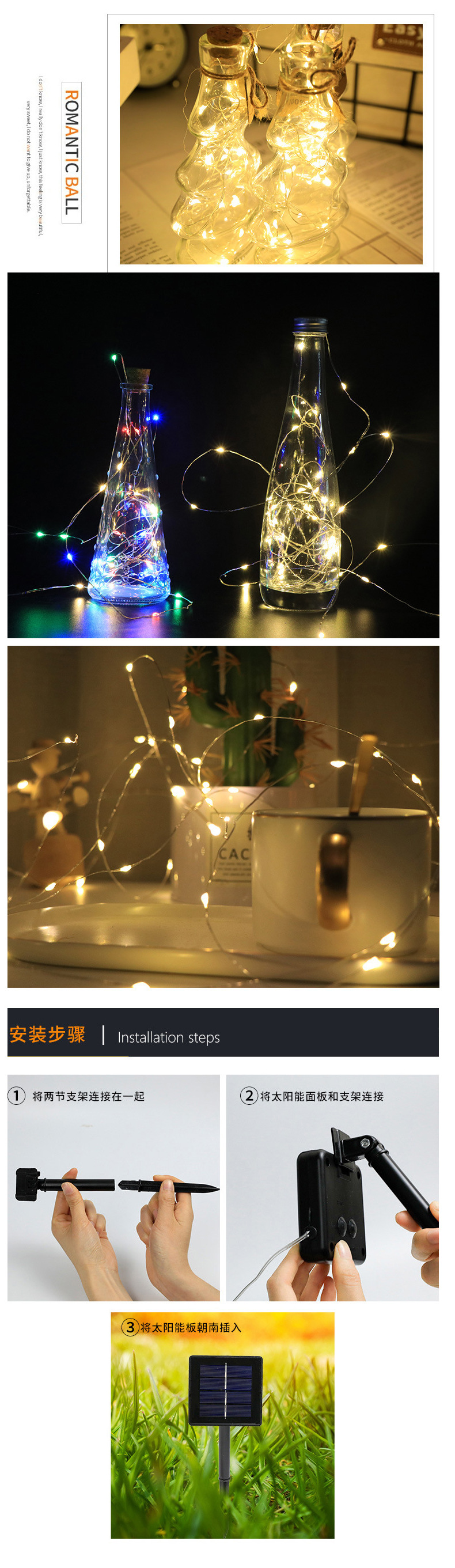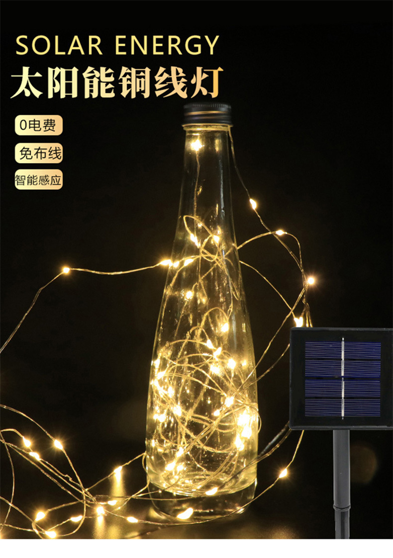 Cadena de luz de alambre de cobre solar impermeable al aire libre Navidad vacaciones atmósfera patio decorativo luz control remoto luz de color tira de luz de alambre de cobre
