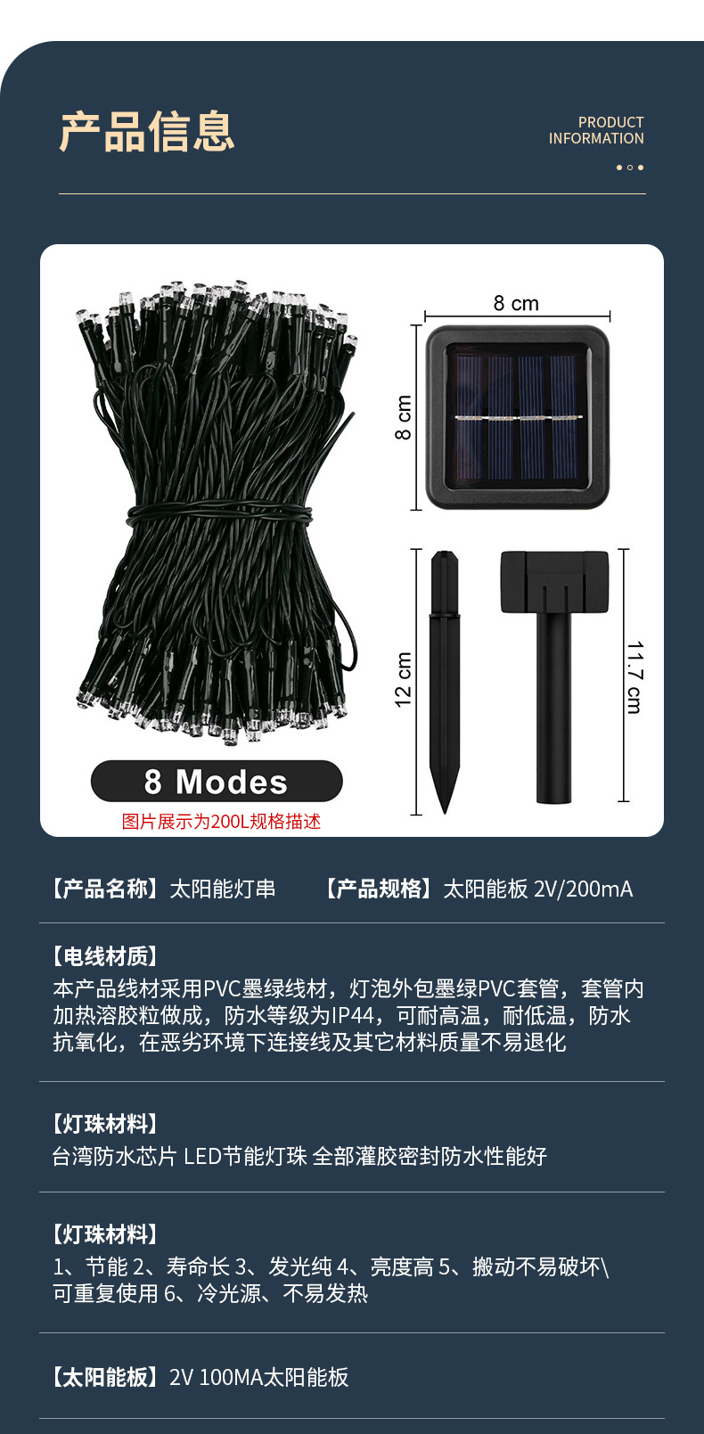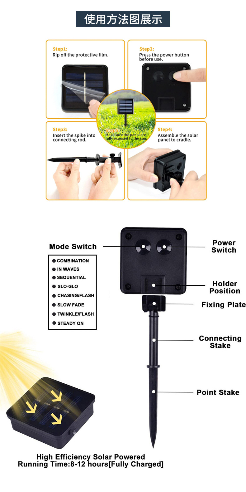 Modelo de control remoto [ocho funciones] solar 52 m 500 luces
