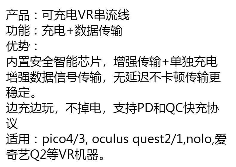 Nueva LÍNEA DE CORRIENTE pico4 quest2 VR enlace carga rápida usb3.0 tipo-c sin falla de energía