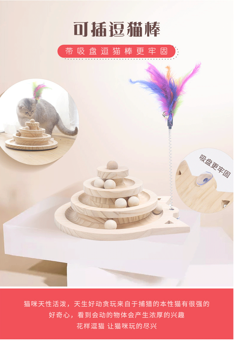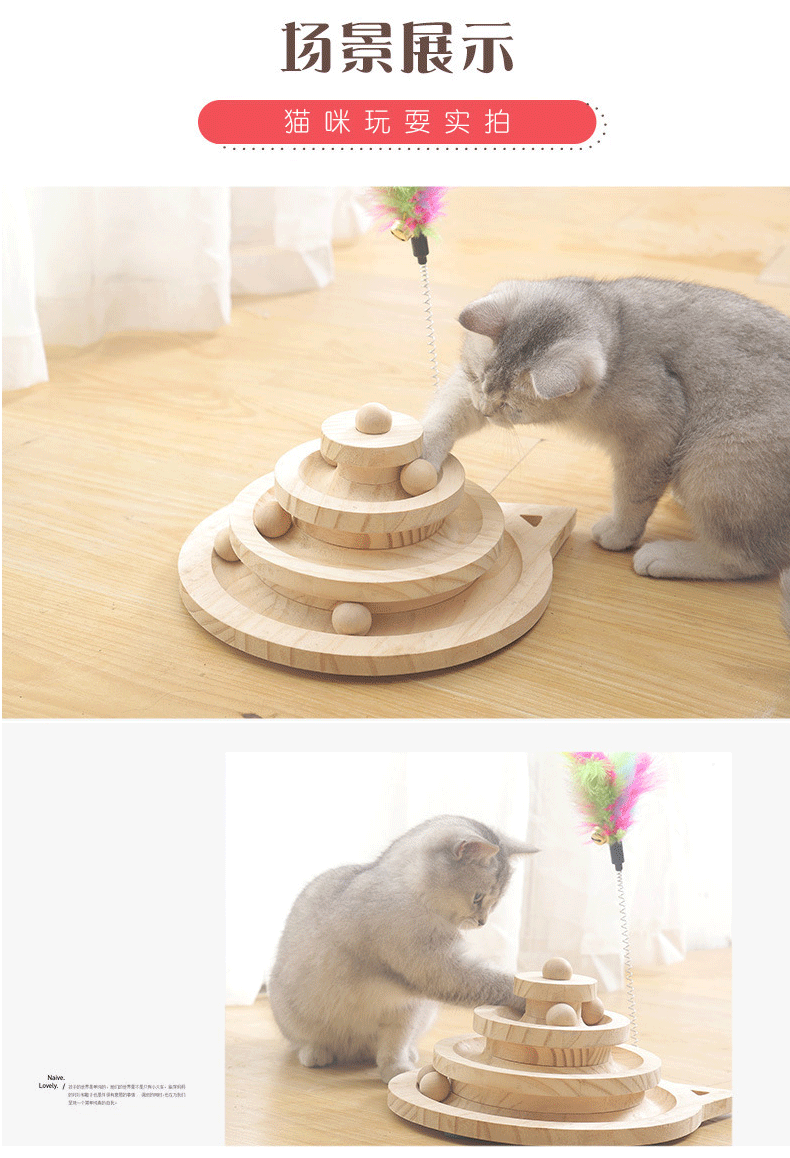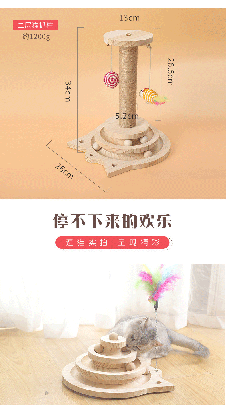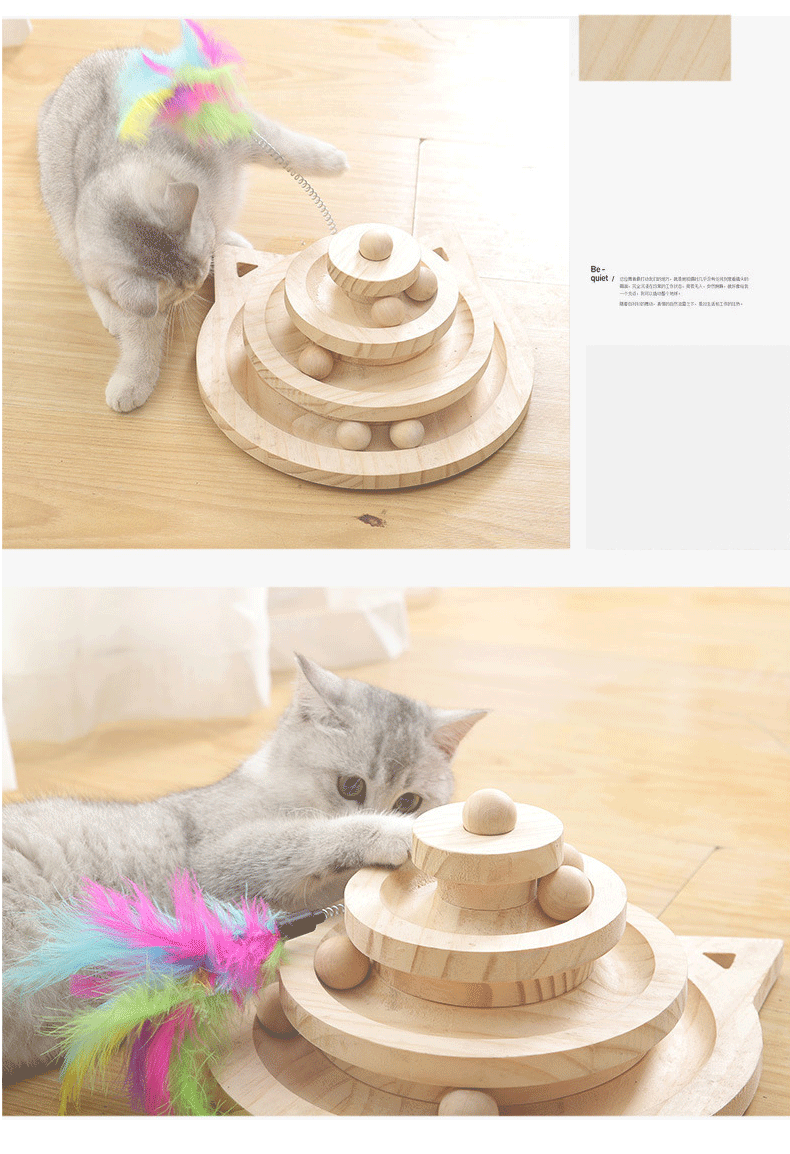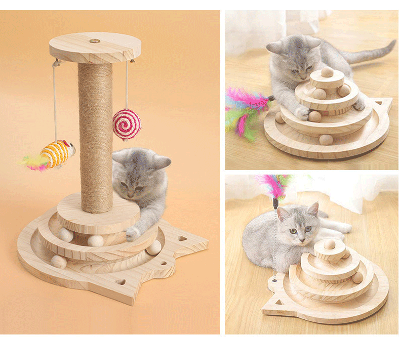 Entrega de una sola pieza gato juguete de madera maciza plato giratorio auto-Hola gato divertido palo gato bola pequeño ratón madera maciza tablero del rasguño gato suministros