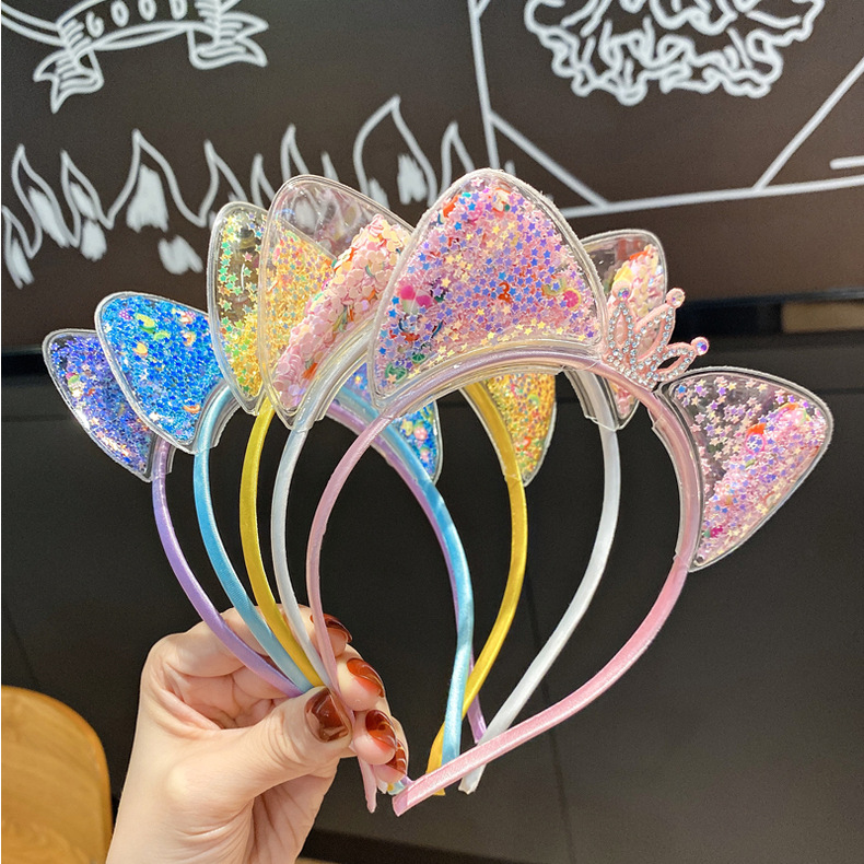 Estilo coreano lindo orejas de gato diadema hembra Red roja arenas movedizas corona pelo presionando diadema para niños Corea del Sur princesa accesorios para el cabello Hada