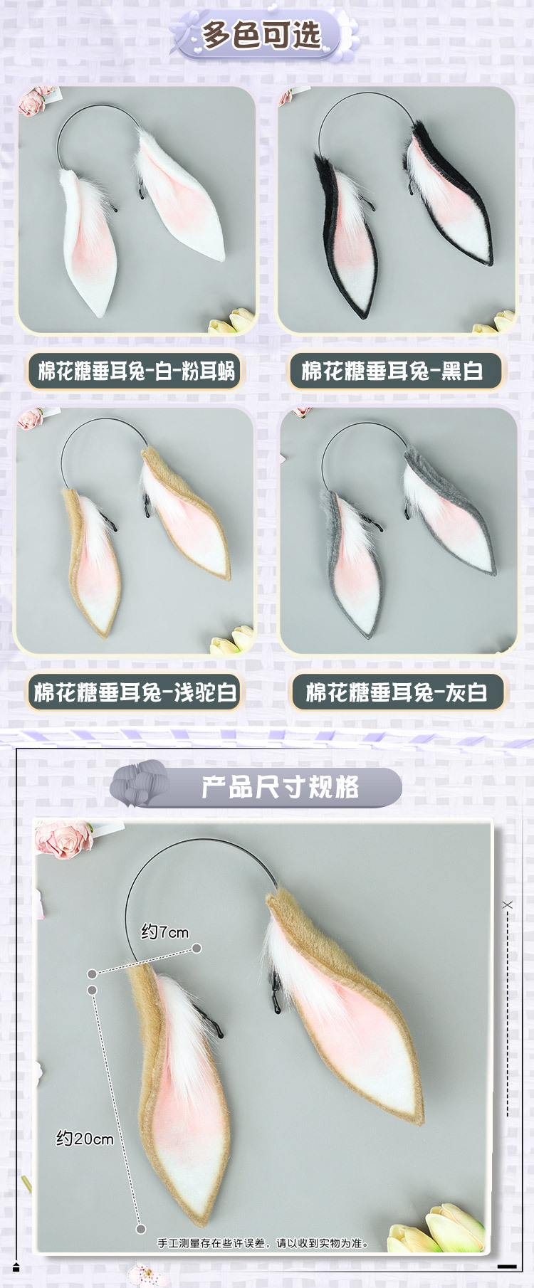 | Color | Algodón de azúcar Lop conejo-Blanco-Rosa Cochlear,Cotton Candy oreja de conejo-blanco y negro,Orejas de algodón azúcar conejo-gris Blanco,Algodón de azúcar Lop conejo-camello claro Blanco |