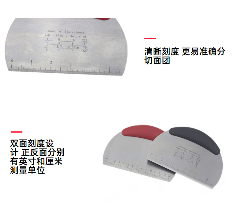 Cortador de fideos de acero inoxidable con escala raspador de masa de harina cortador de fideos de azúcar de leche herramienta para hornear corte de un solo lado en stock