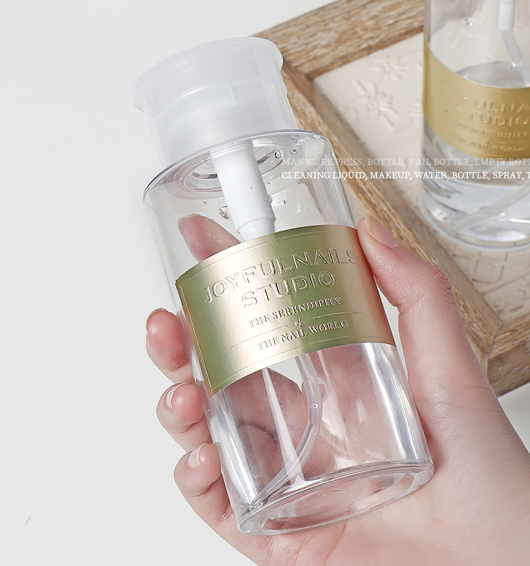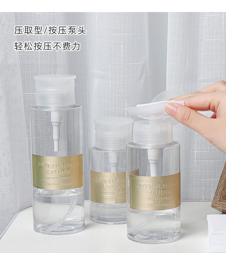 Removedor de esmalte de uñas de alta gama estilo japonés, paquete de removedor de esmalte de uñas, juego de herramientas de botella a presión, juego completo para la apertura de tiendas, botella grande portátil para dispensar.
