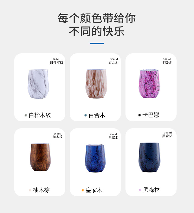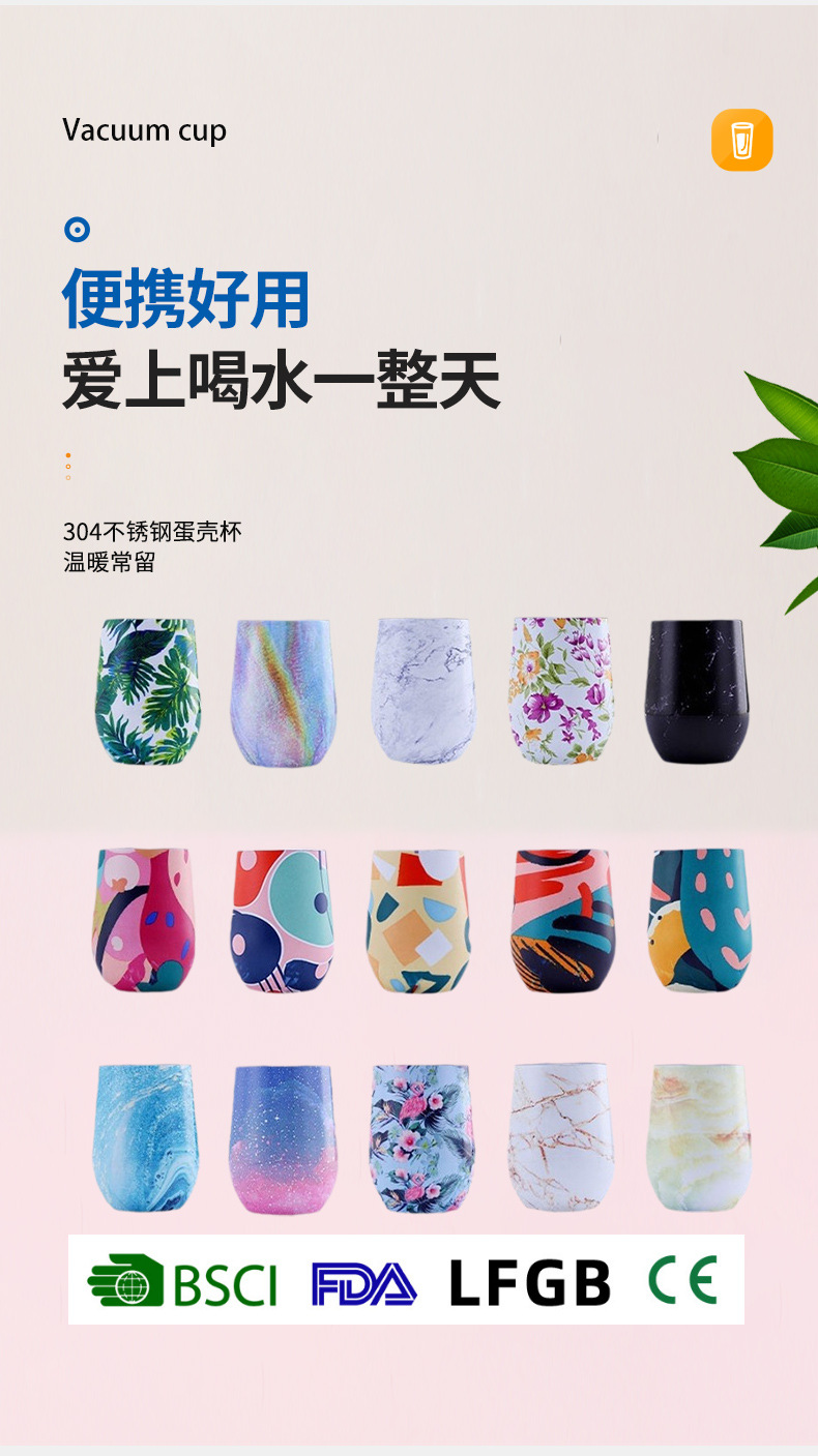 Taza de cáscara de huevo transfronteriza, taza de vino tinto de acero inoxidable de doble capa, taza de agua de gran barriga, taza de huevo al vacío en forma de U, taza termo, taza de cáscara de huevo