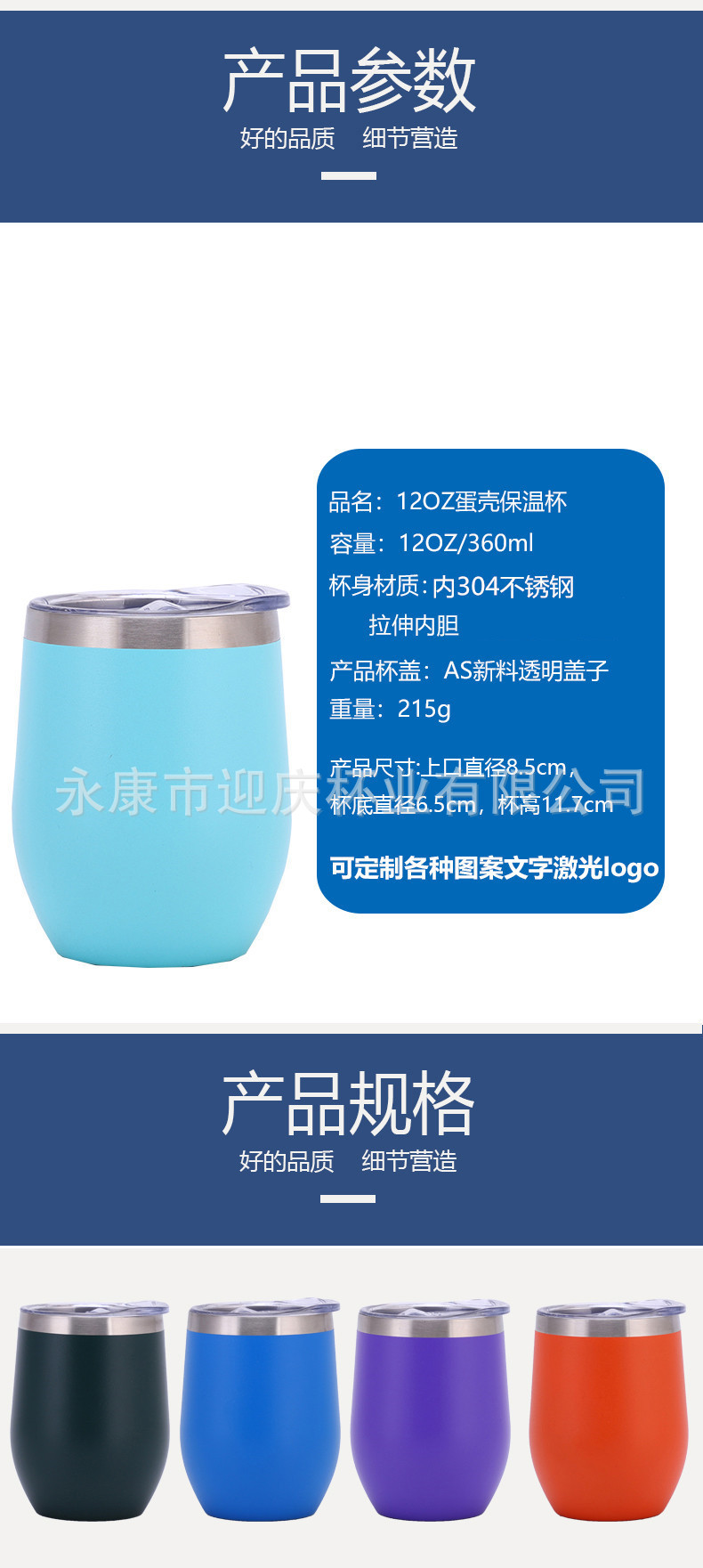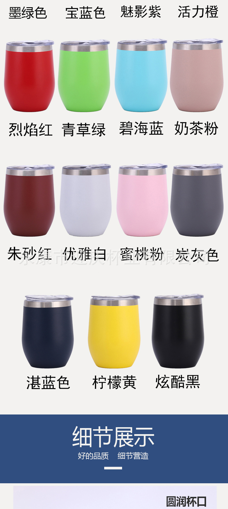 Taza de huevo transfronteriza de 12oz taza de vino tinto creativo taza de hielo en forma de U taza de cáscara de huevo rociada de acero inoxidable al vacío de doble capa personalizada
