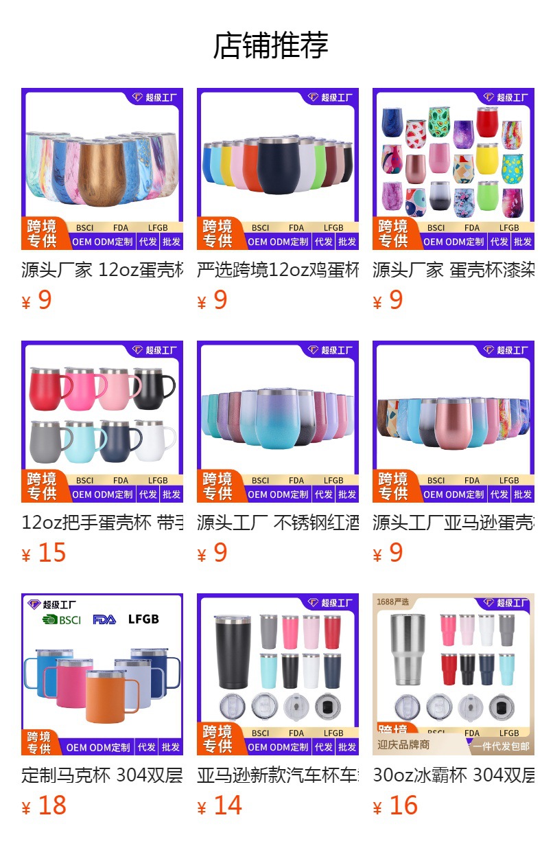 FUENTE fabricante cáscara de huevo Taza de pintura de impresión versión completa doble 304 taza de cerveza de acero inoxidable en forma de U vino aislado copa de vino