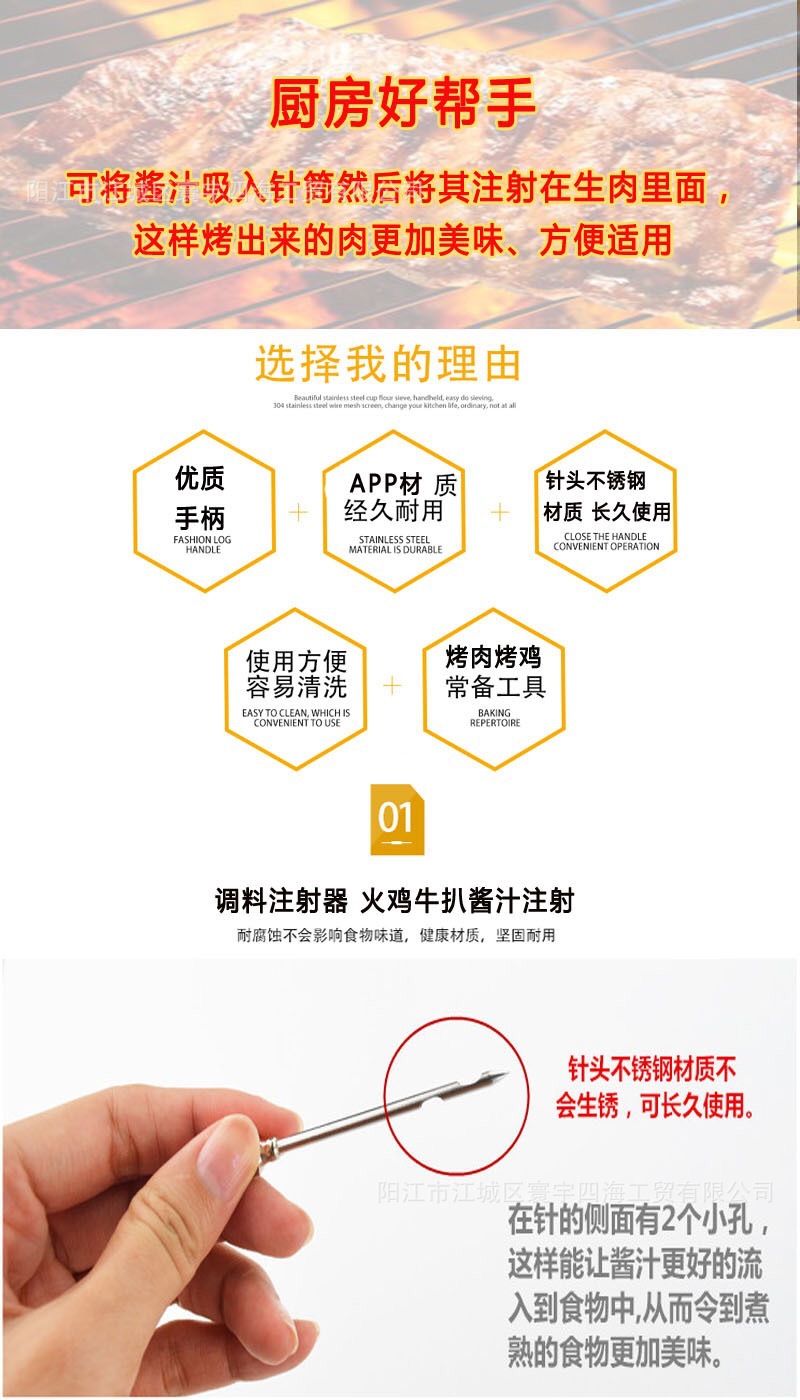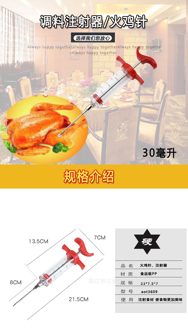 Cocina Turquía aguja carne barbacoa salsa condimento jeringa Turquía aguja barbacoa herramienta de cocina