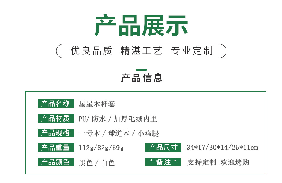 | Especificaciones | Blanco N ° 1 Madera,Madera blanco Fairway,Pierna de pollo blanco,Negro N ° 1 Madera,Madera de Fairway negro,Pierna de pollo negro |