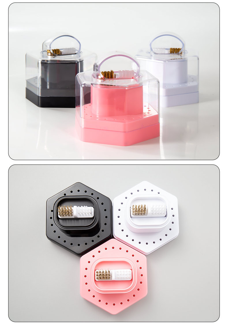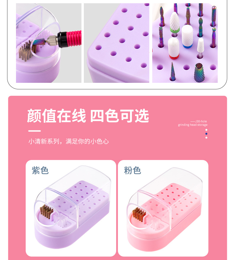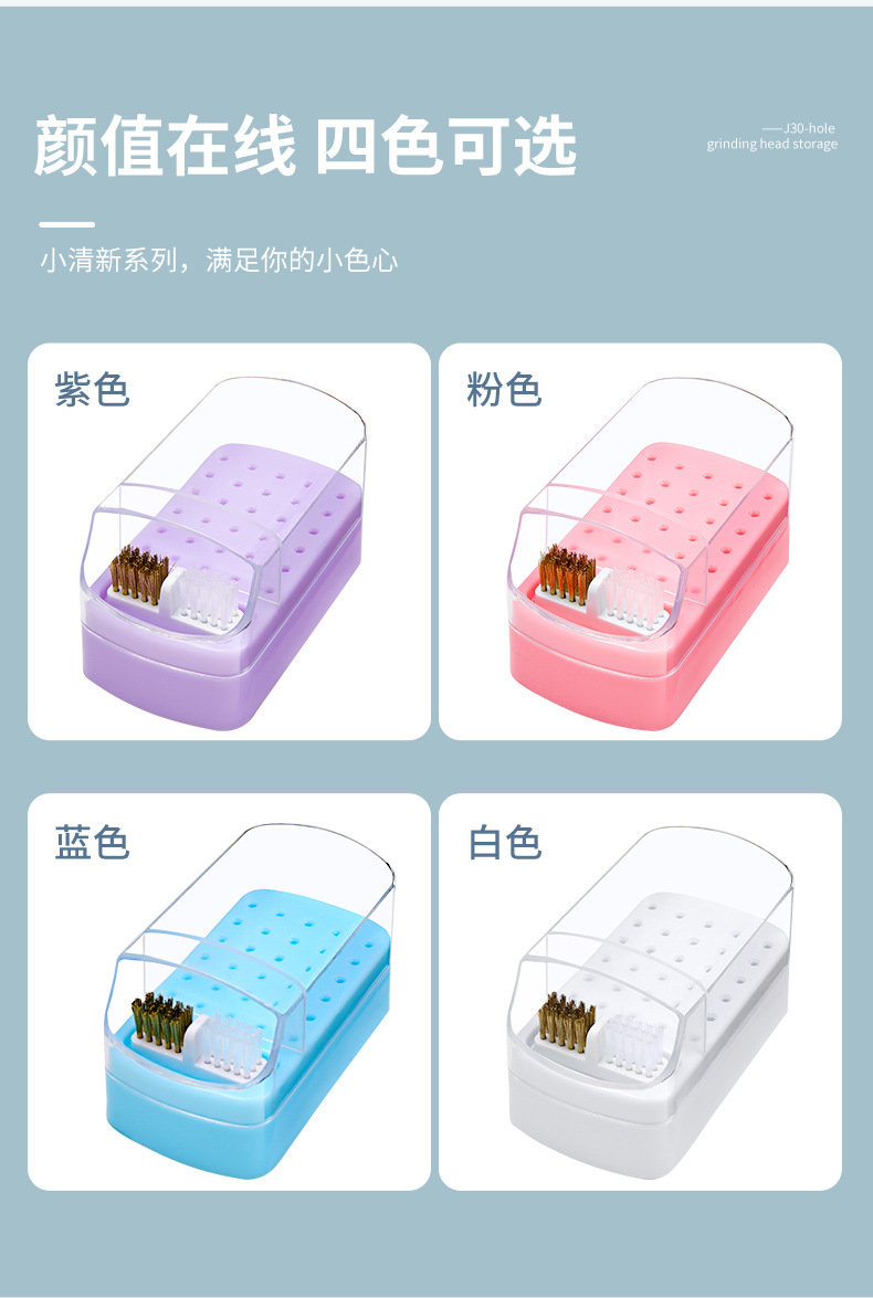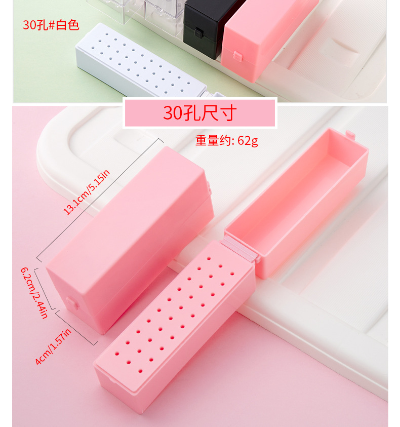 Nueva caja de almacenamiento de cabezal de molienda de 30 agujeros con cepillo de limpieza caja vacía herramientas de uñas de cerámica de acero de tungsteno dividido a prueba de polvo