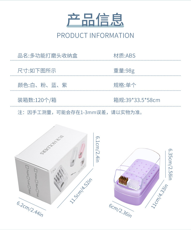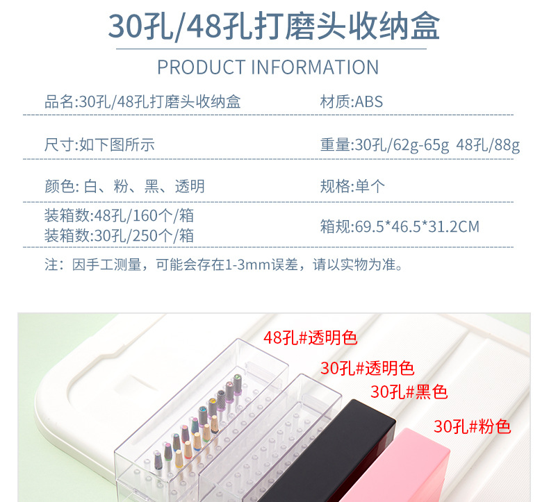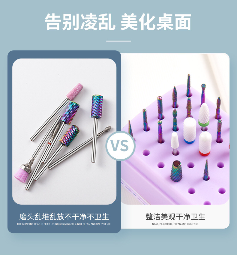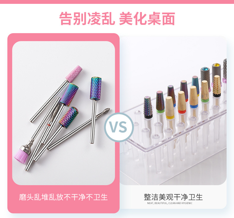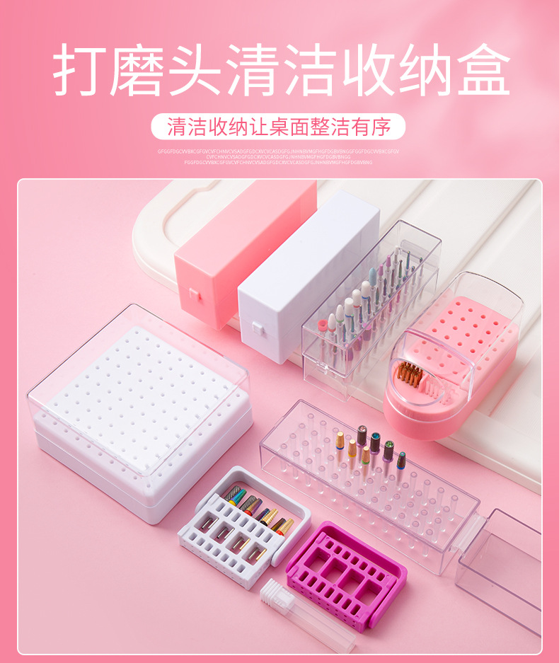 Nueva caja de almacenamiento de cabezal de molienda de 30 agujeros con cepillo de limpieza caja vacía herramientas de uñas de cerámica de acero de tungsteno dividido a prueba de polvo
