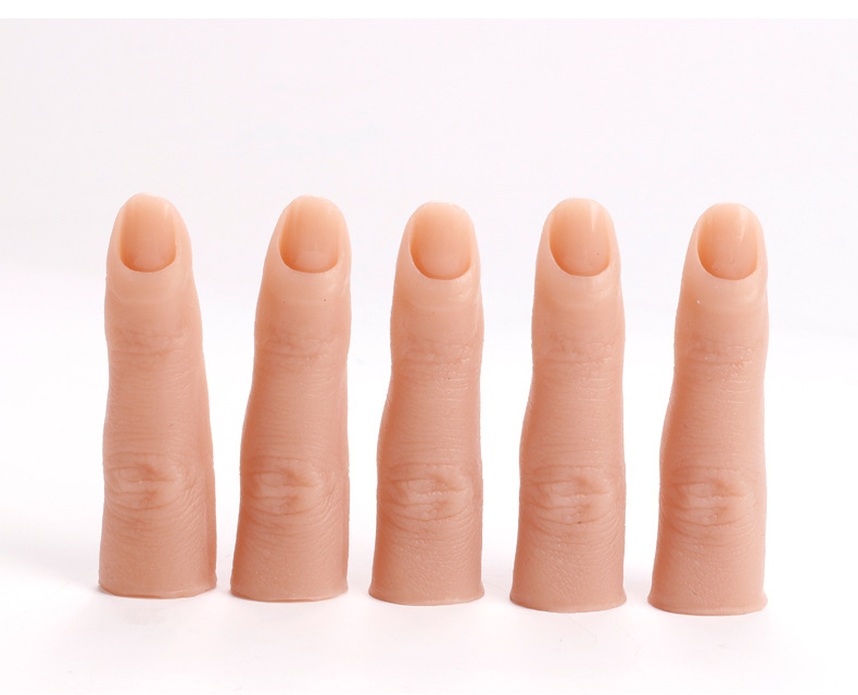Los dedos de silicona completos para manicura simulada transfronteriza se pueden doblar y insertar en piezas de uñas para práctica y exhibición, modelo de dedo de silicona.