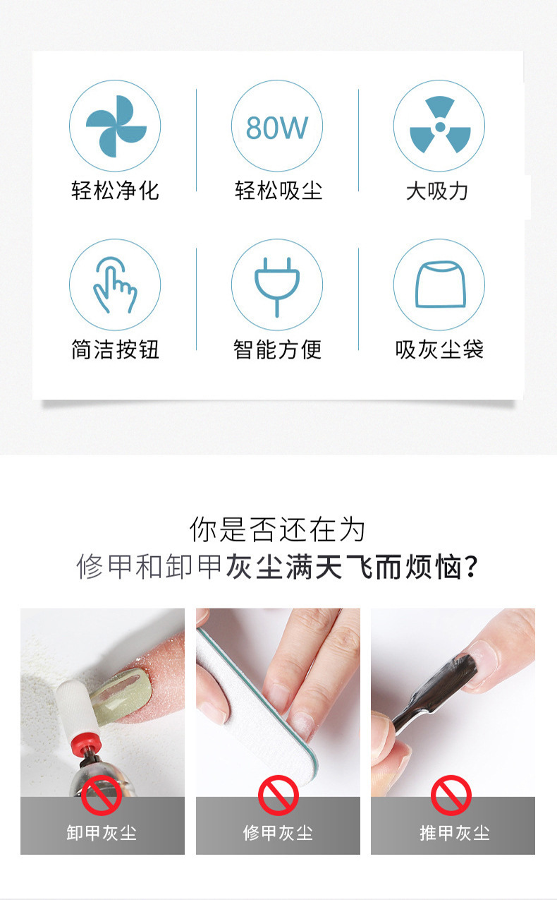 80W aspiradora de uñas máquina de polvo de uñas eliminación de polvo máquina de belleza de uñas pulido Aspiradora