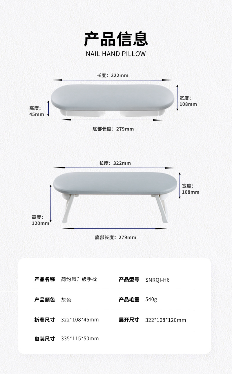 H6 Luz de lujo manicura mano almohada traje portátil plegable fácil de limpiar manicura mano almohada cómoda antideslizante manicura mano almohada