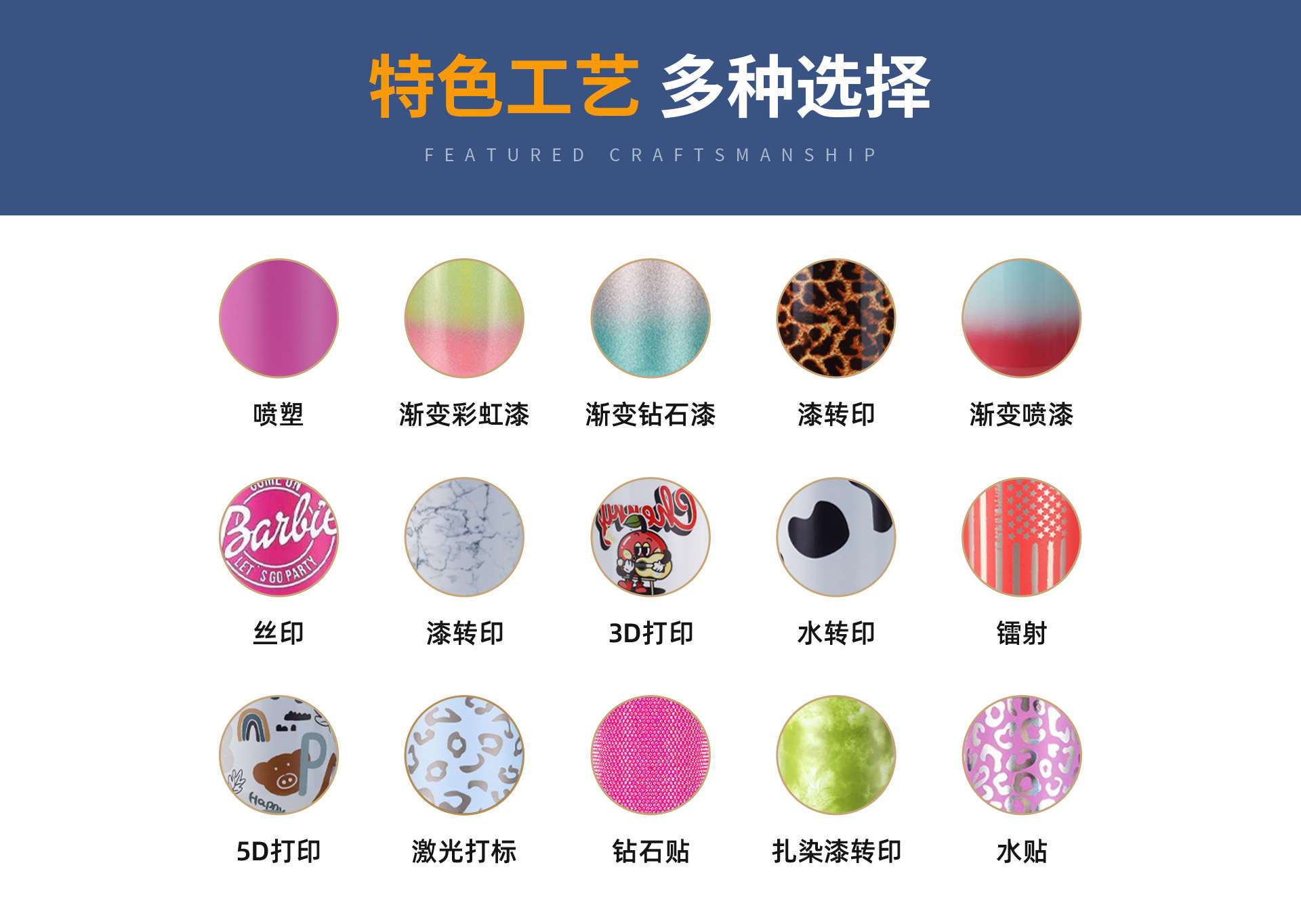 | Selección de proceso personalizada | Impresión por transferencia térmica,Grabado láser,Pantalla de seda,Impresión de transferencia de agua,Impresión 3D,Transferencia de pintura |