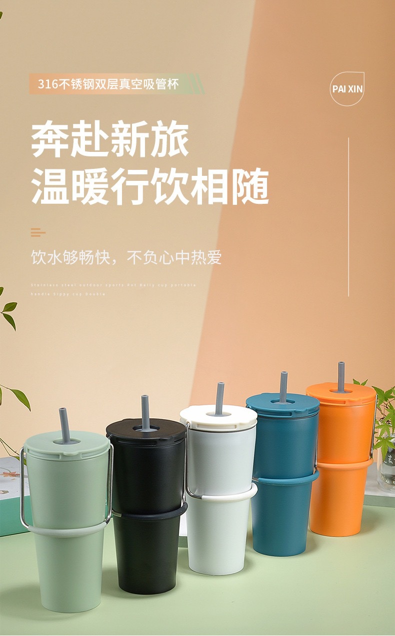 Transfronterizo exclusivo Americano portátil Taza de paja portátil de acero inoxidable del coche de Vacío Termo taza de café taza