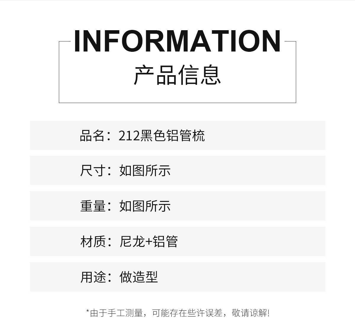 | Artículo No. | 212 tubo de aluminio negro peine |