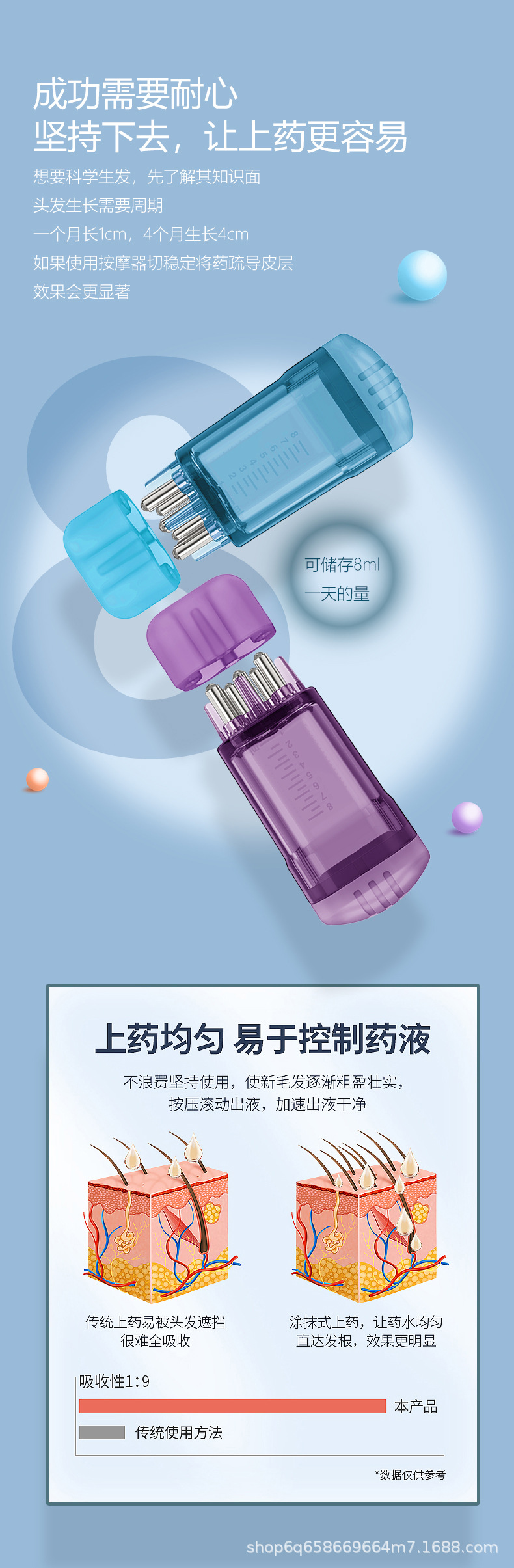Mino aplicador líquido peine pelo artefacto esencia aceite esencial importación Bola de masaje