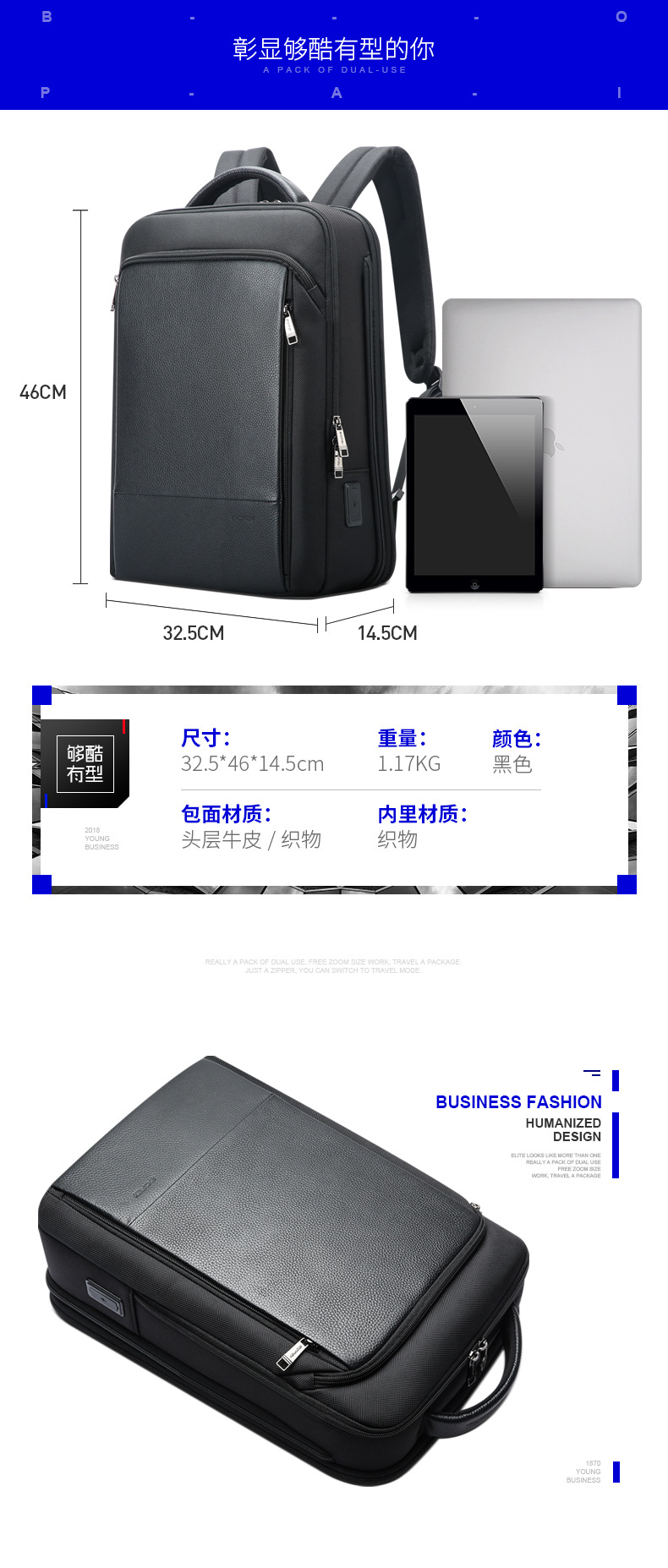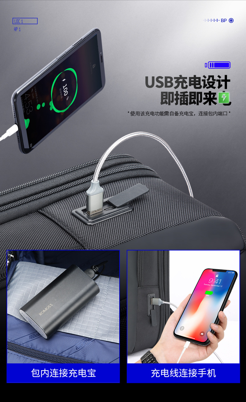 Original hombres de negocios mochila multifuncional USB mochila de gran capacidad Mochila De La computadora entrega de la fábrica
