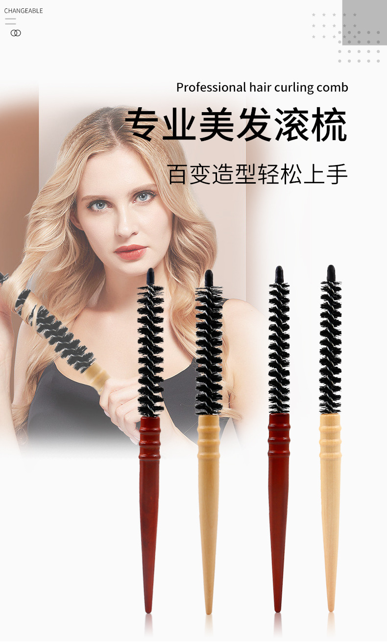 Forma de pelo rizado peine de rodillo pequeño herramienta de peluquería resistente a altas temperaturas Mango de madera de loto uso doméstico Bangs maquillaje mullido peine de pelo rizado