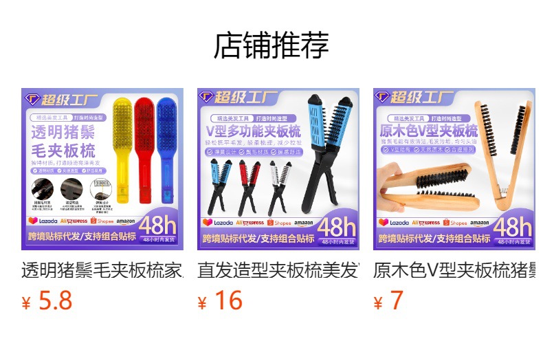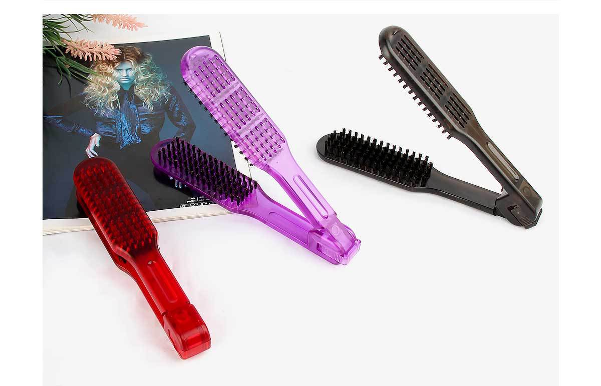 Amazon pelo liso peinado madera contrachapada peine resistente a altas temperaturas anti-estática alisado peine del pelo plástico transparente en forma de V melena peine