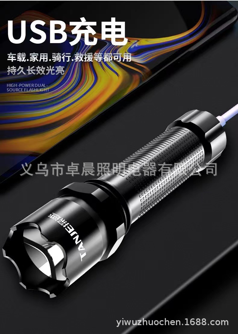 Linterna LED luz fuerte USB carga al aire libre de largo alcance pequeño mini portátil multifuncional linterna de aleación de aluminio para el hogar